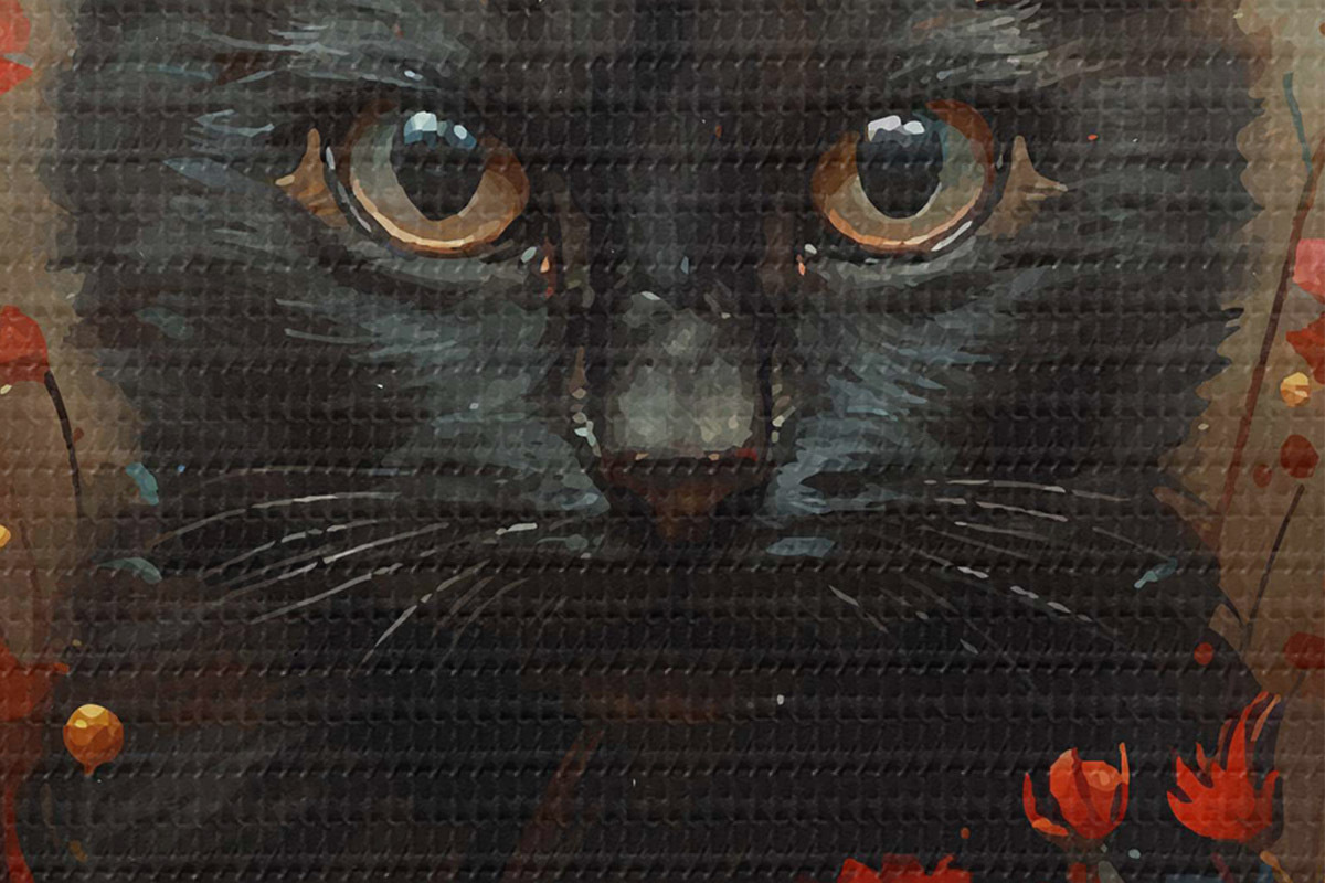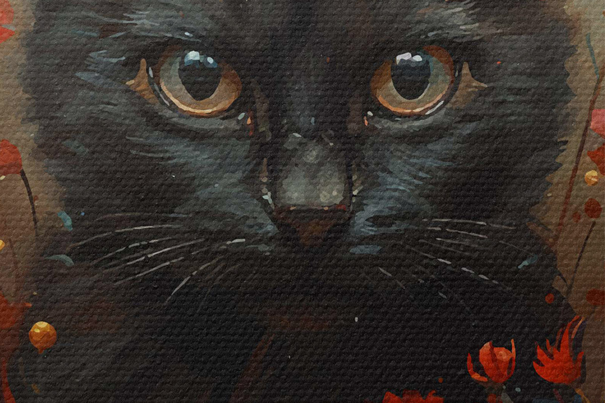 Runde Wandbilder Katze, Blumen, schwarze Katze r40839