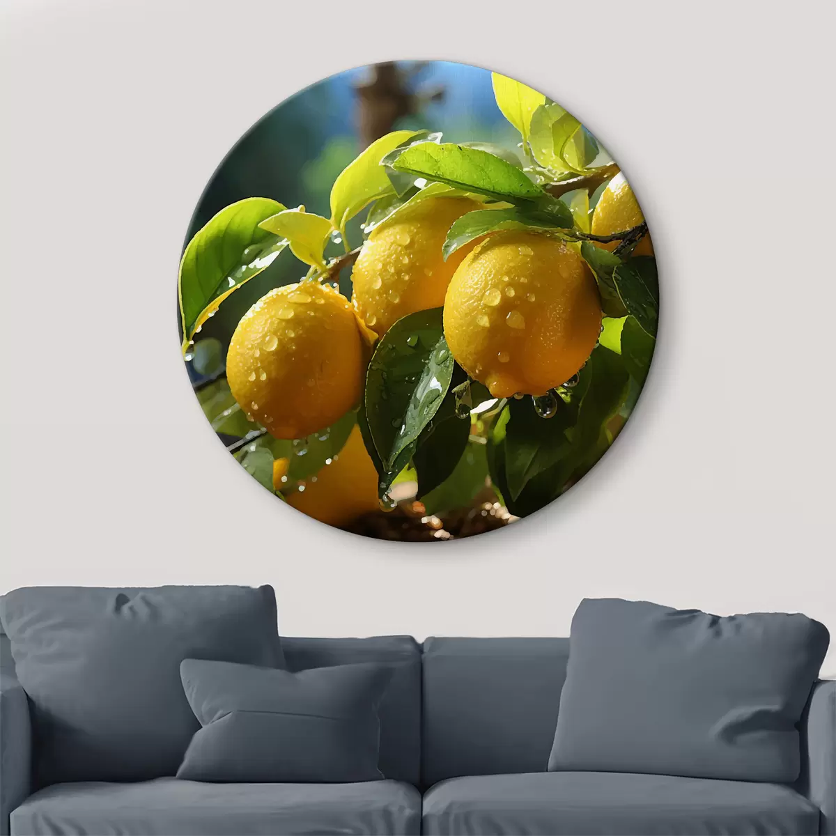 Runde Wandbilder Zitronen, Zitronen am Baum, Tau Nr r40840