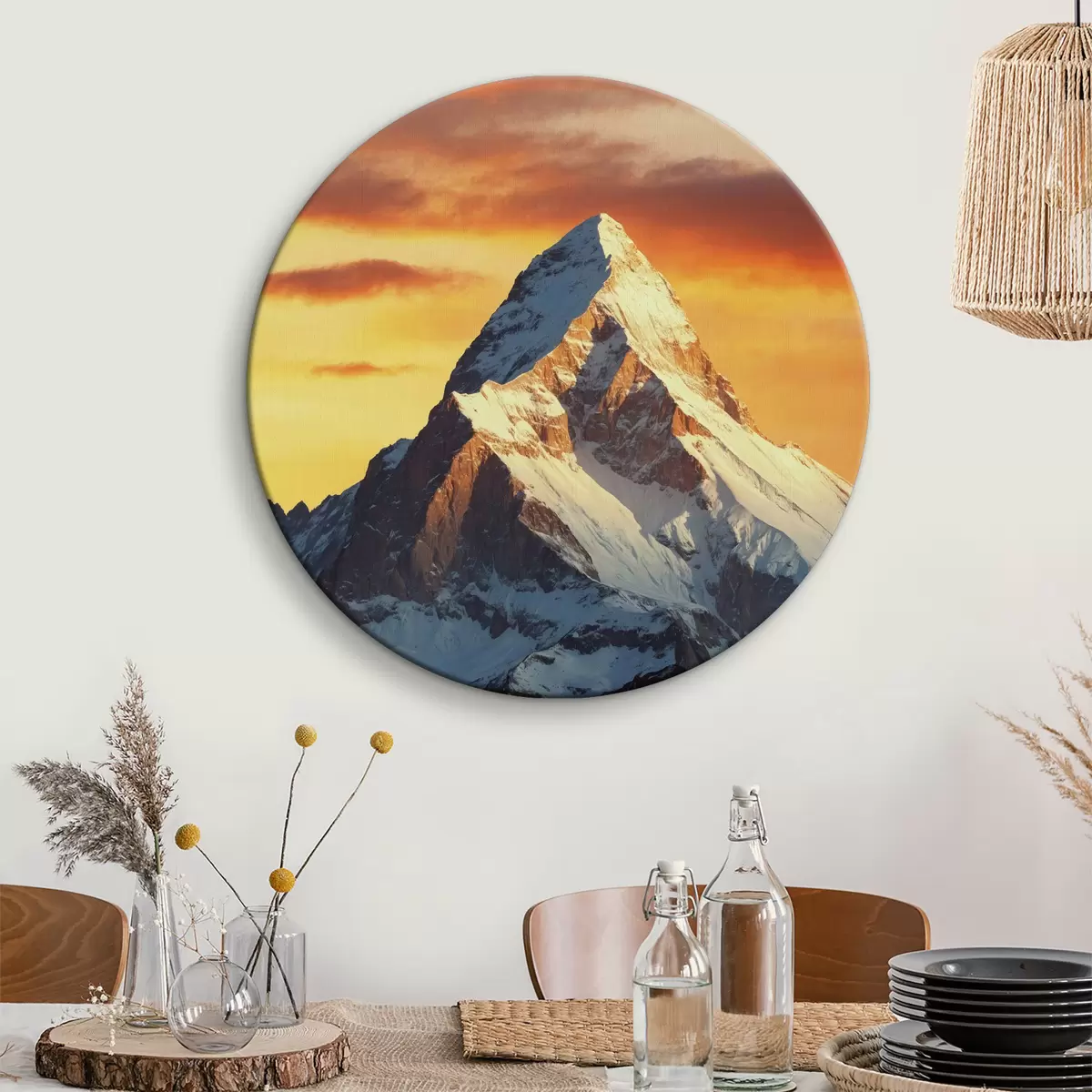 Runde Wandbilder Schneebedeckter Berg und orangefarbener Himmel Nr r40852