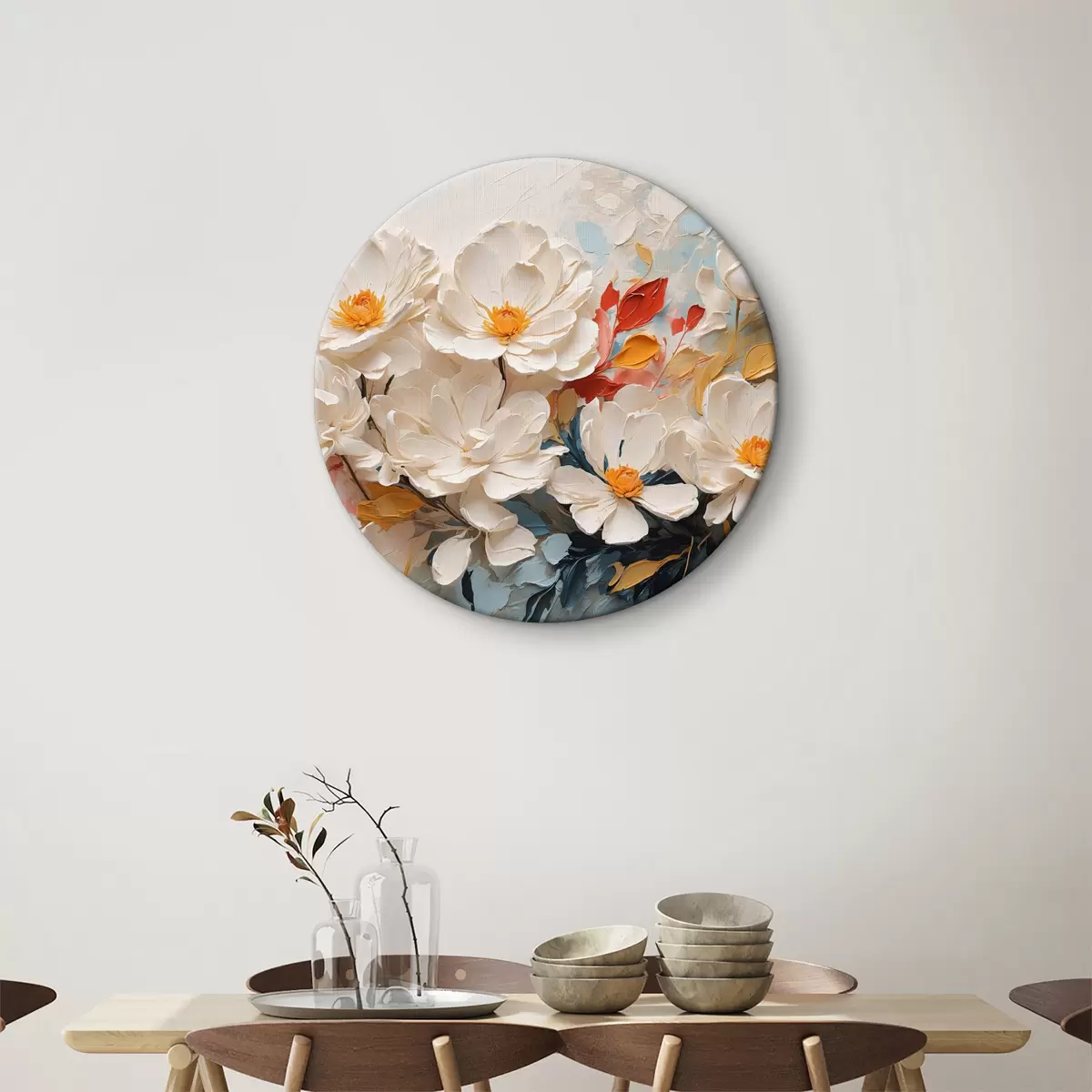 Runde Wandbilder Abstrakte weiße Blumen in Öl r40862