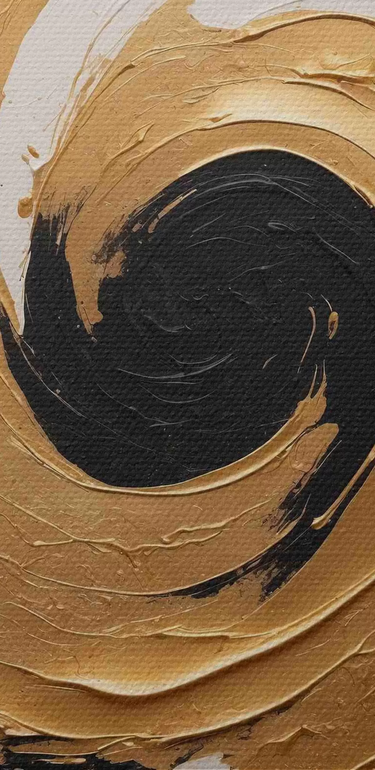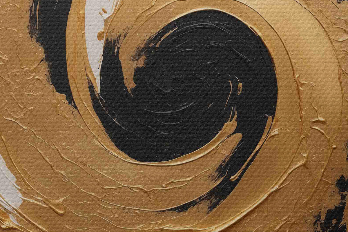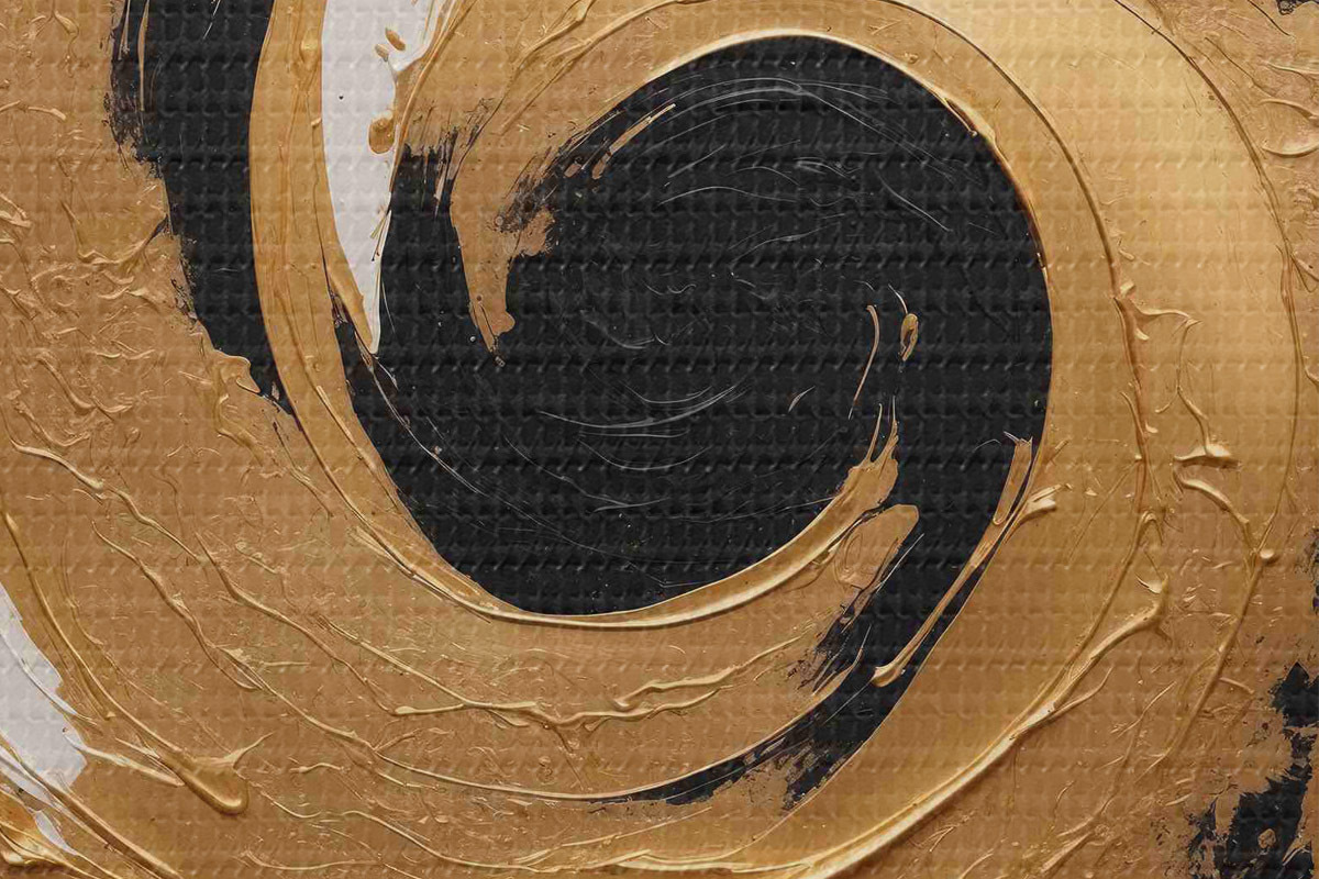 Runde Wandbilder Abstraktes Ölgemälde mit schwarzem und gelbem Wirbel Nr r40864