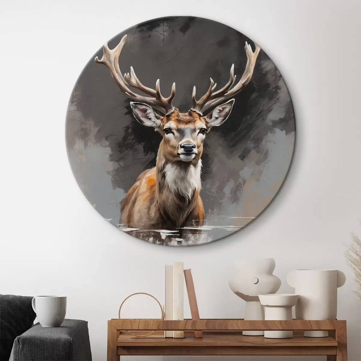 Runde Wandbilder Hirsche auf grauem und schwarzem Hintergrund Nr r40865