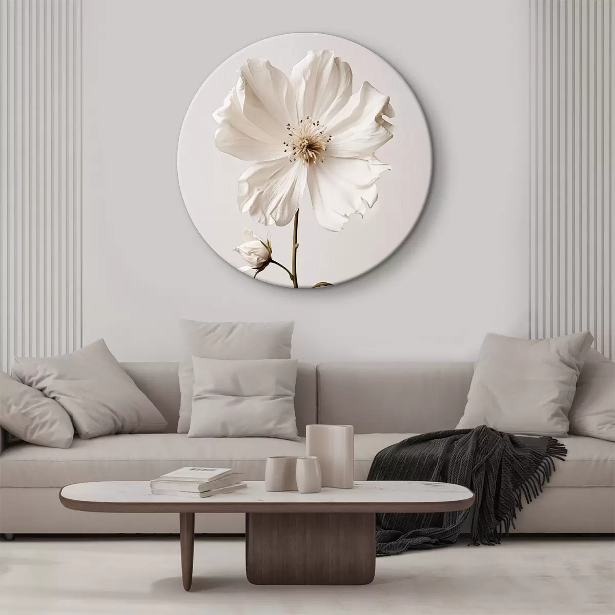 Runde Wandbilder Blume mit weißen Blütenblättern Minimalismus r40881