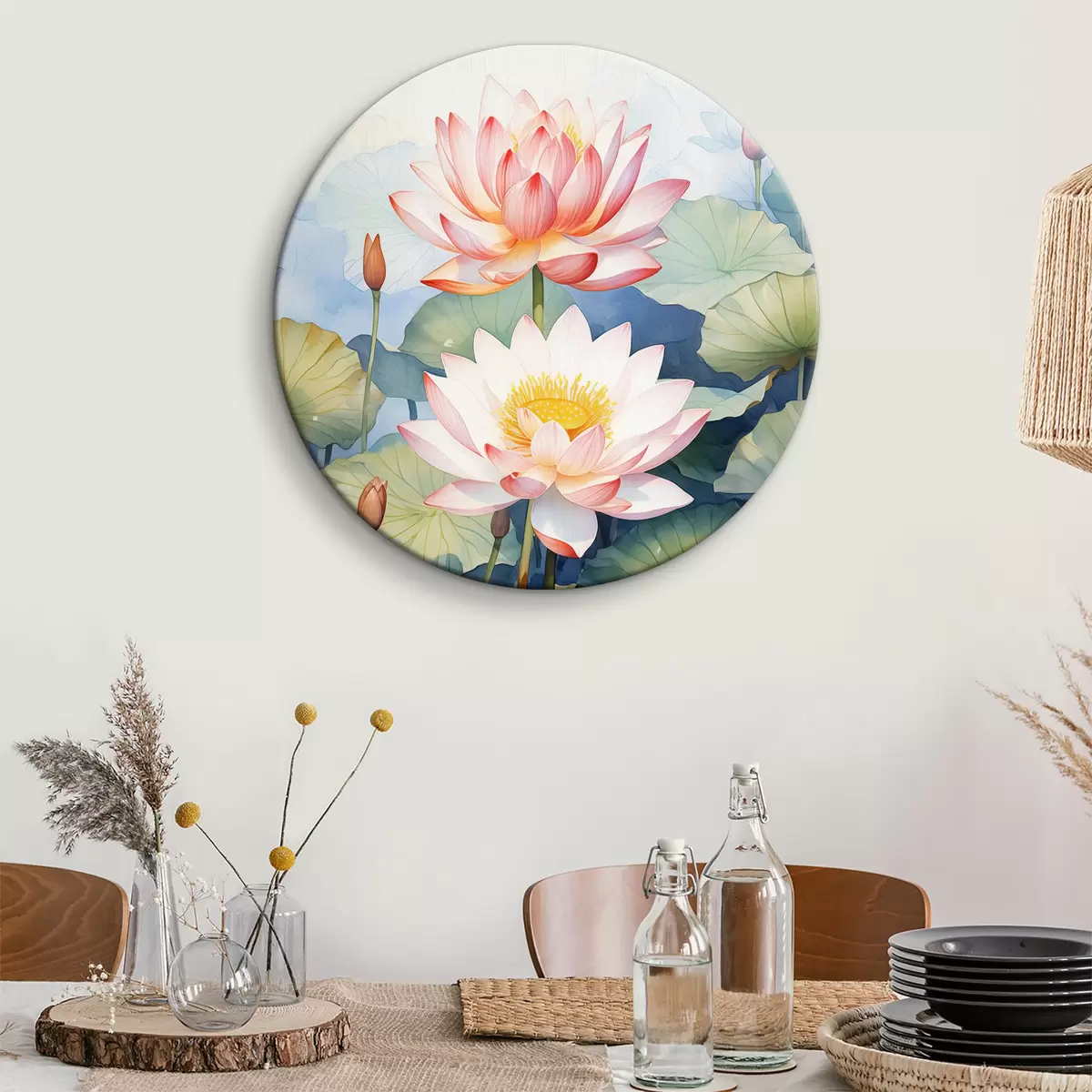 Runde Wandbilder Seerosenblüten in Aquarellteich r40888