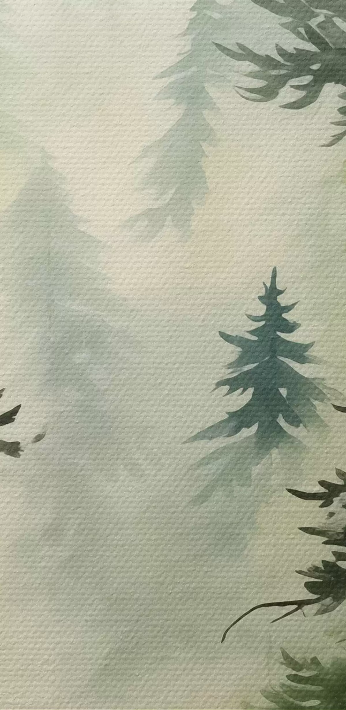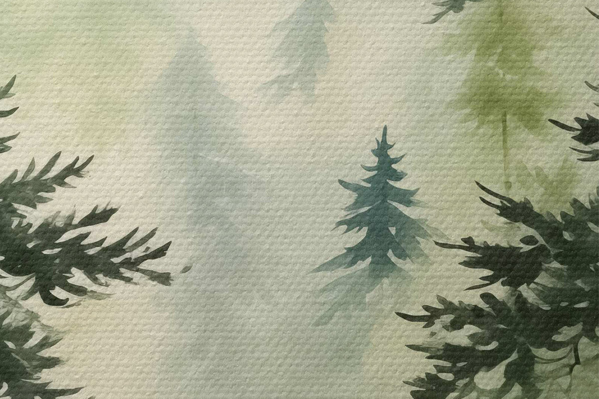 Runde Wandbilder Tannenbäume im Wald vor dem Hintergrund der Berge, Aquarell, grün r40889