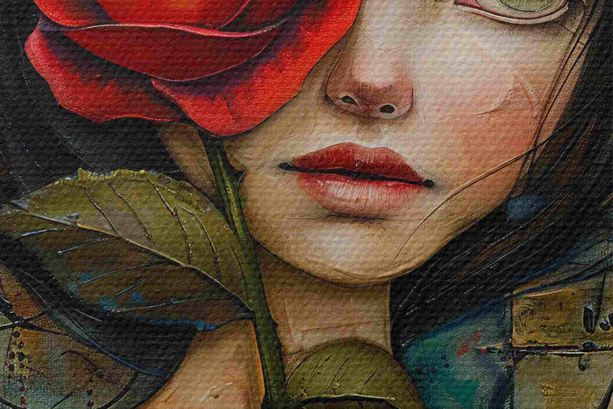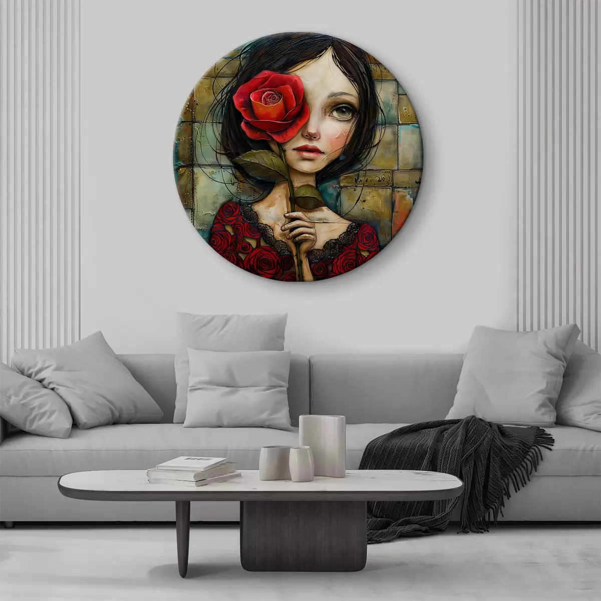 Runde Wandbilder Aquarell Mädchen mit einer Rose Nr r40895