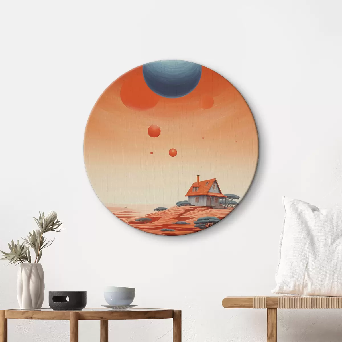 Runde Wandbilder Wüste mit Haus, futuristische Kunst, Weltraum, Planet r40944