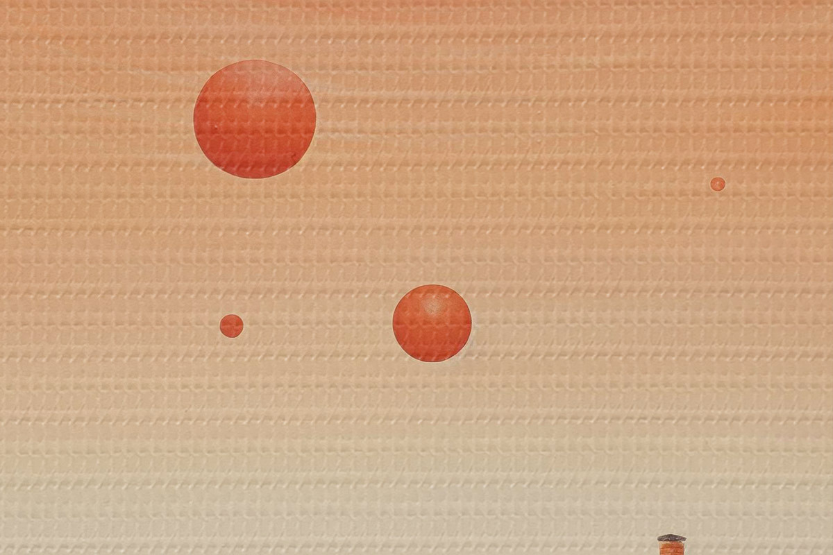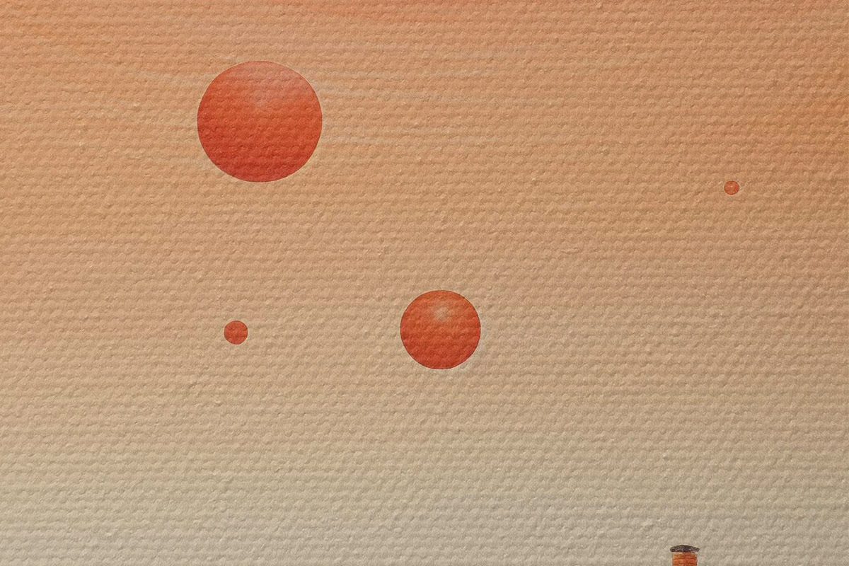 Runde Wandbilder Wüste mit Haus, futuristische Kunst, Weltraum, Planet Nr r40944