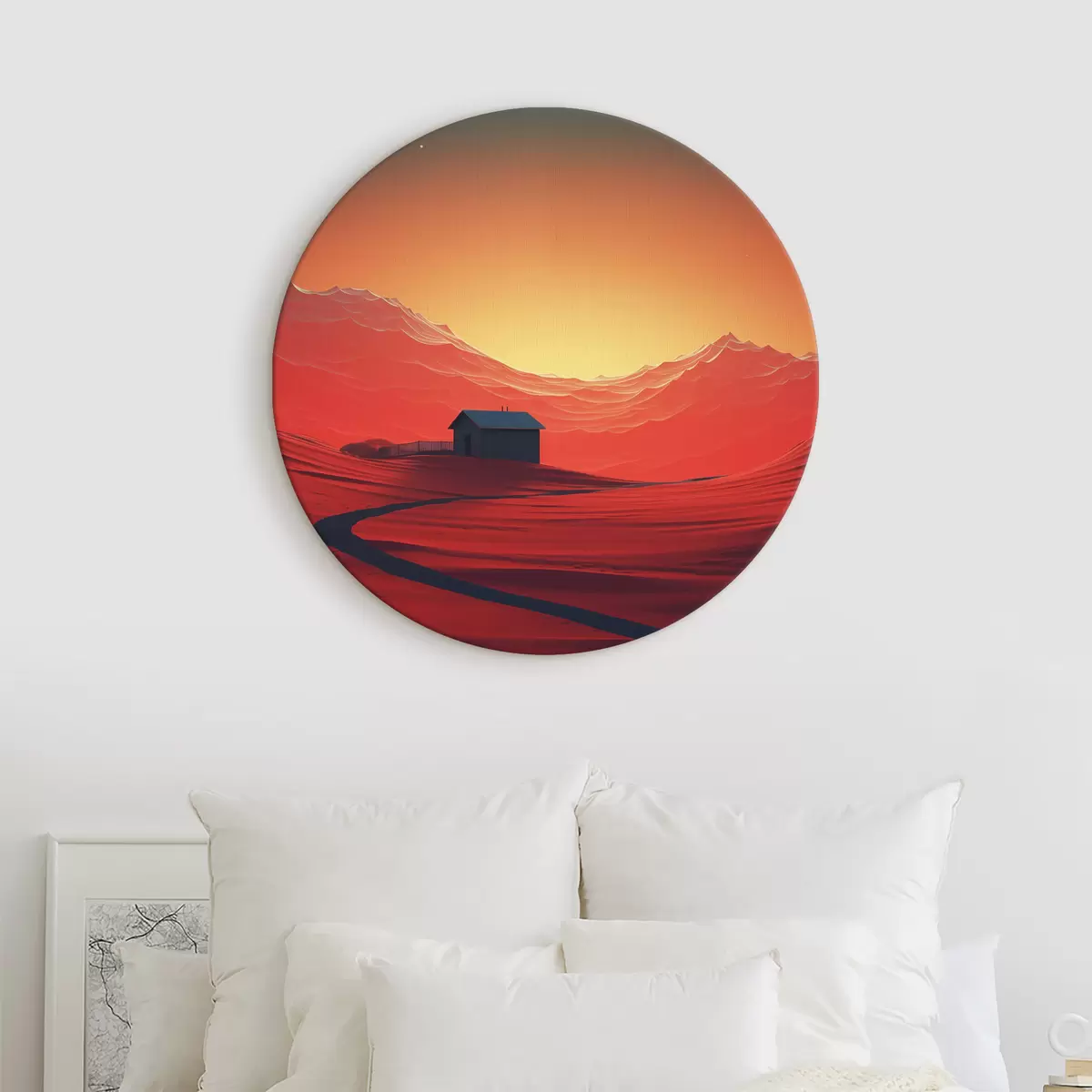 Runde Wandbilder Nacht in der Wüste, Mond, roter Sand, Futurismus, kleines Haus r40950