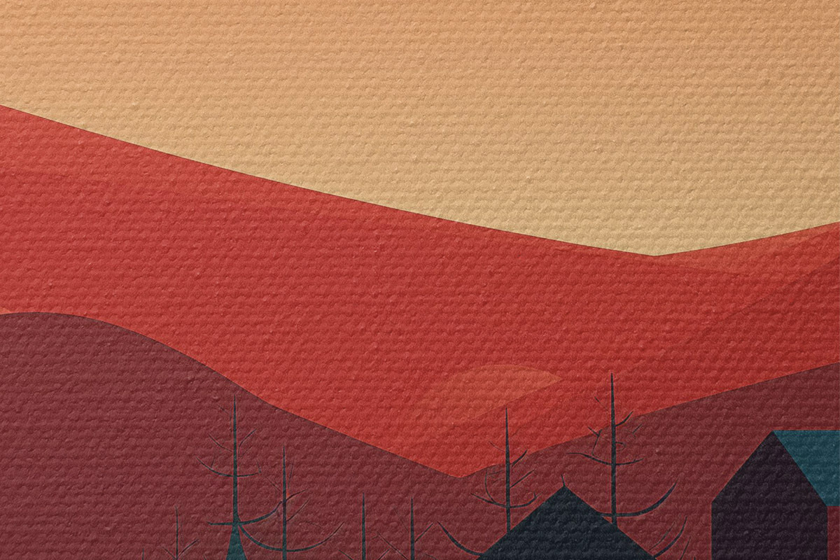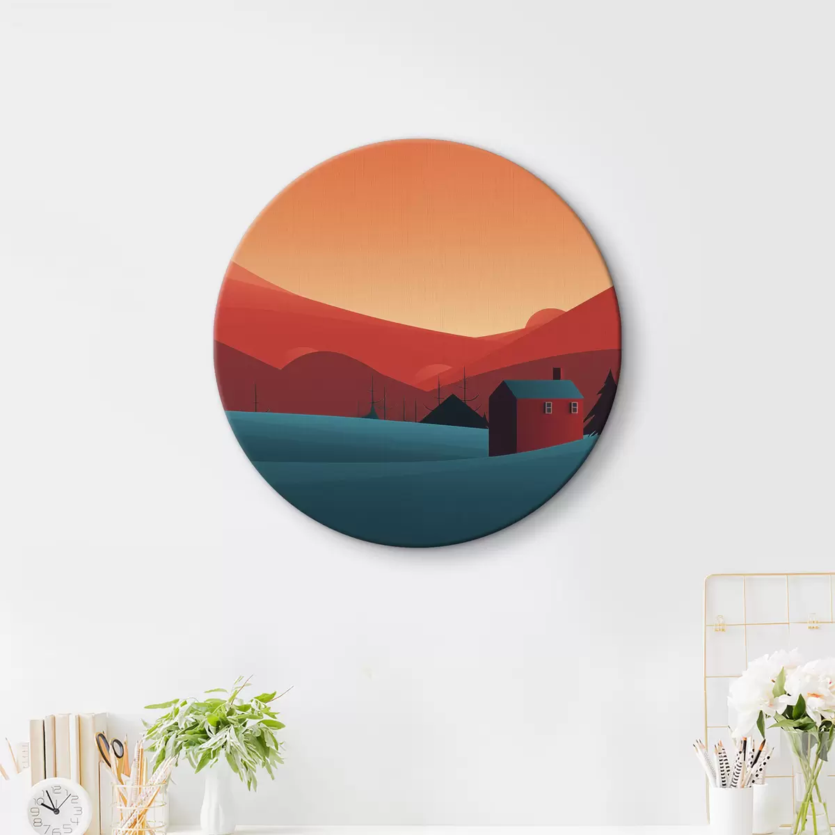 Runde Wandbilder Minimalistische Landschaft mit Haus und Wald Nr r40952