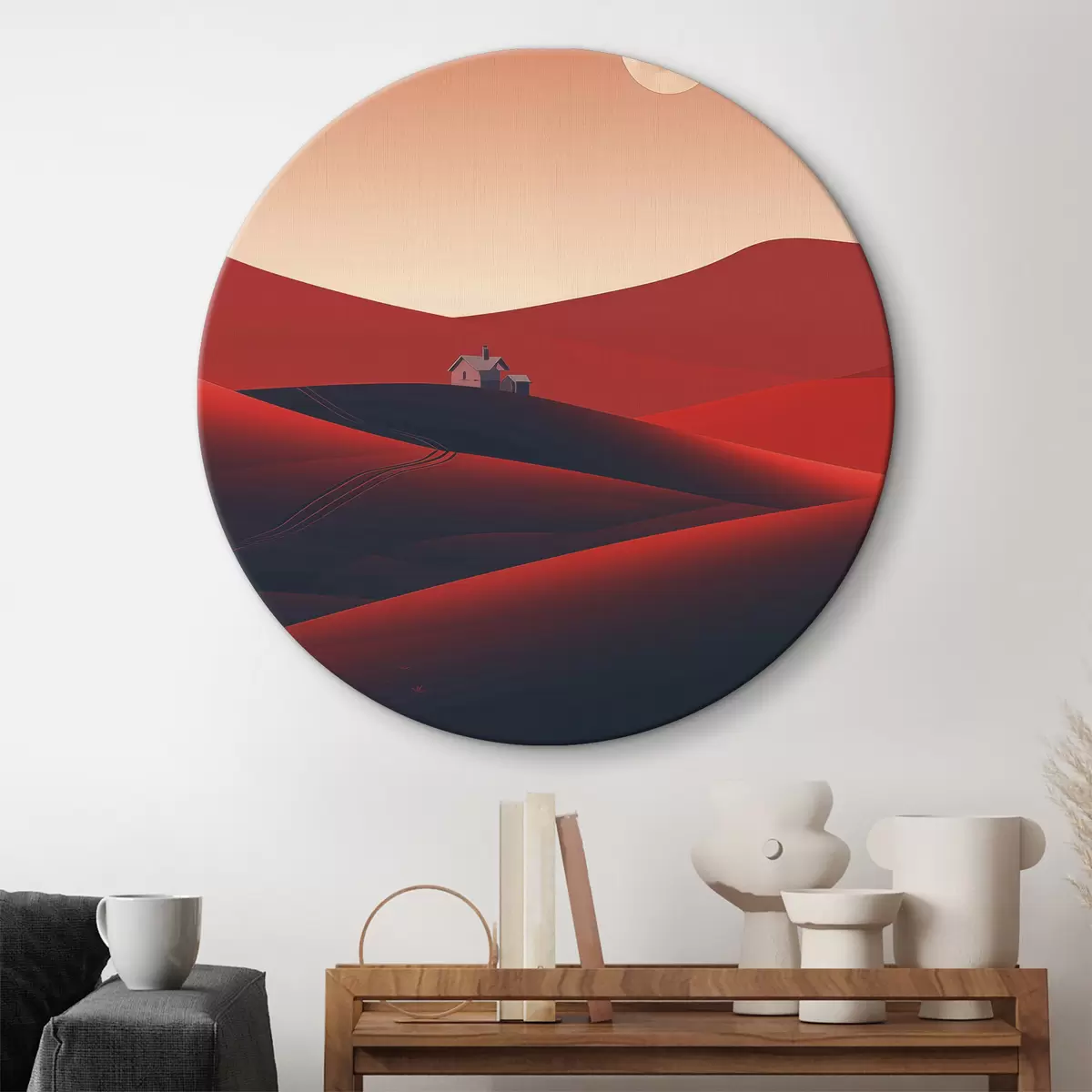Runde Wandbilder Minimalistische Wüstenlandschaft mit Haus und Mond Nr r40953