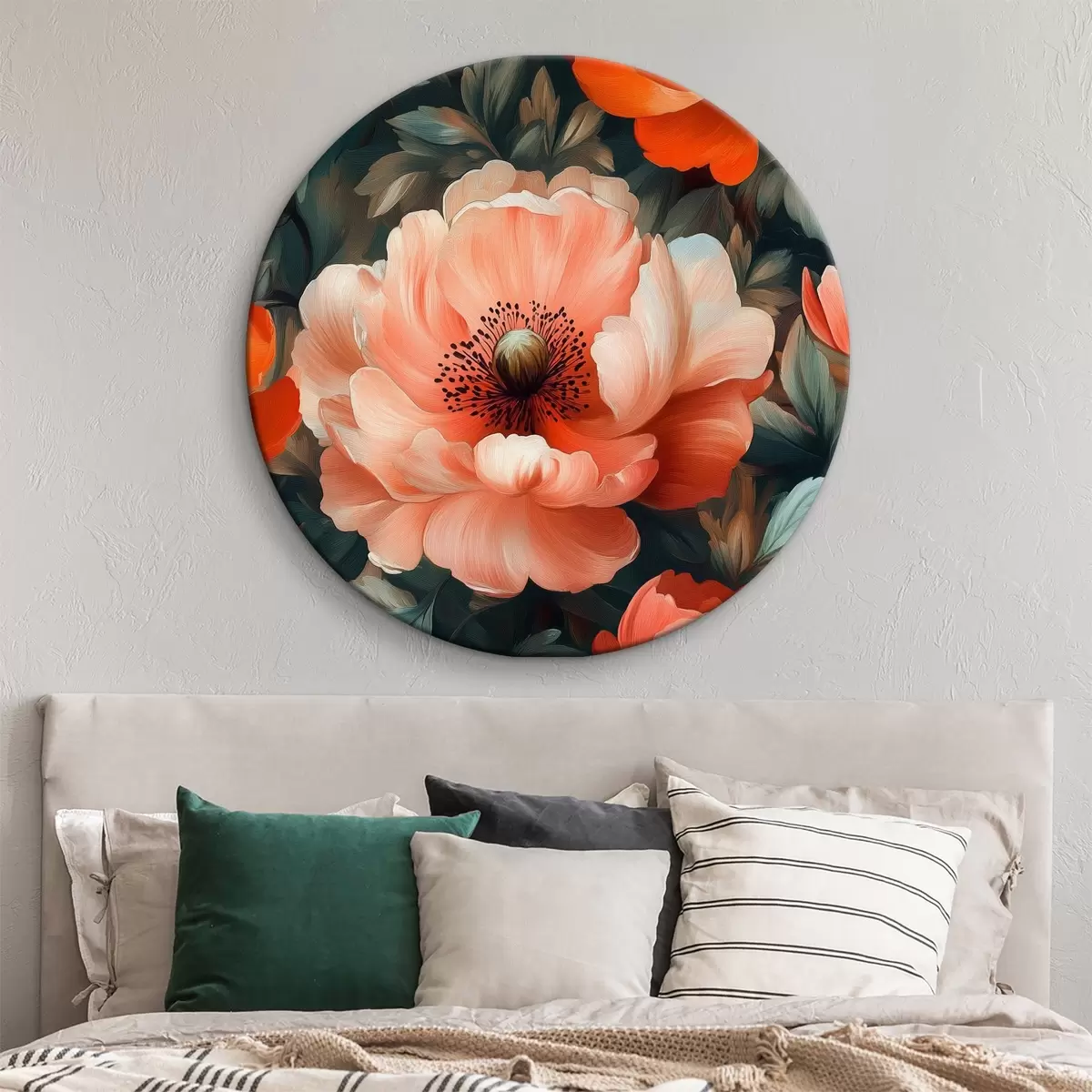 Runde Wandbilder Große rote Pfingstrosen in zarten Ölpinselstrichen r40964