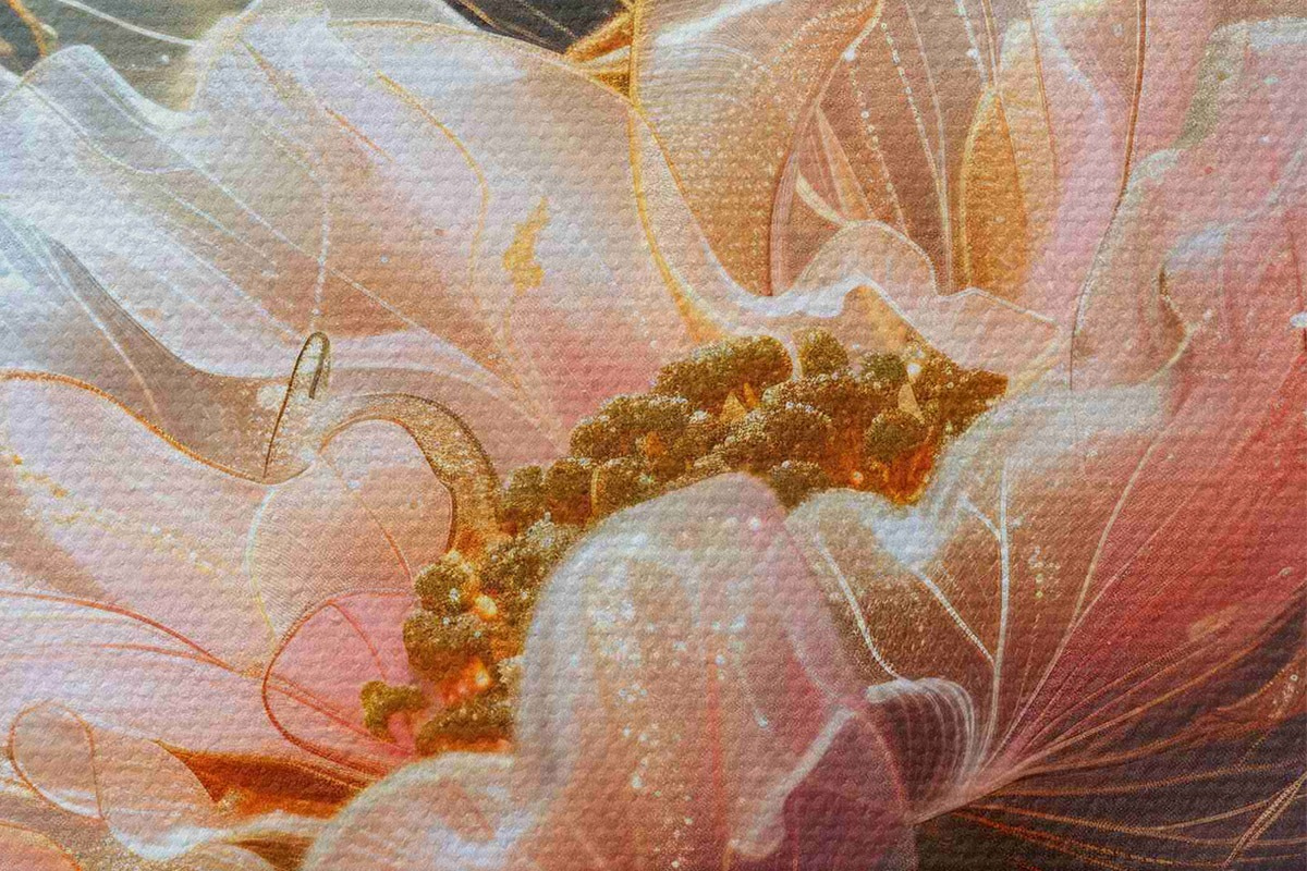 Drei Materialtypen stehen zur Verfügung: Economic Canvas - ein dichtes und haltbares Material für den Digitaldruck, identisch mit Malerleinwand, wasserfeste Oberfläche, realistische Wiedergabe von Details, mittelkörniges Material. Premium Canvas - die Textur ähnelt der einer Malerleinwand (verwobene kleine Fäden). Weiche, detaillierte Wiedergabe des Bildes auf einer matten Oberfläche. Eco-Premium - hochwertiges Gewebe aus 100% Baumwolle. Dank der natürlichen Baumwollfasern ist das Material langlebig und verschleißfest. Hervorragende Farbwiedergabe und Detailtreue.