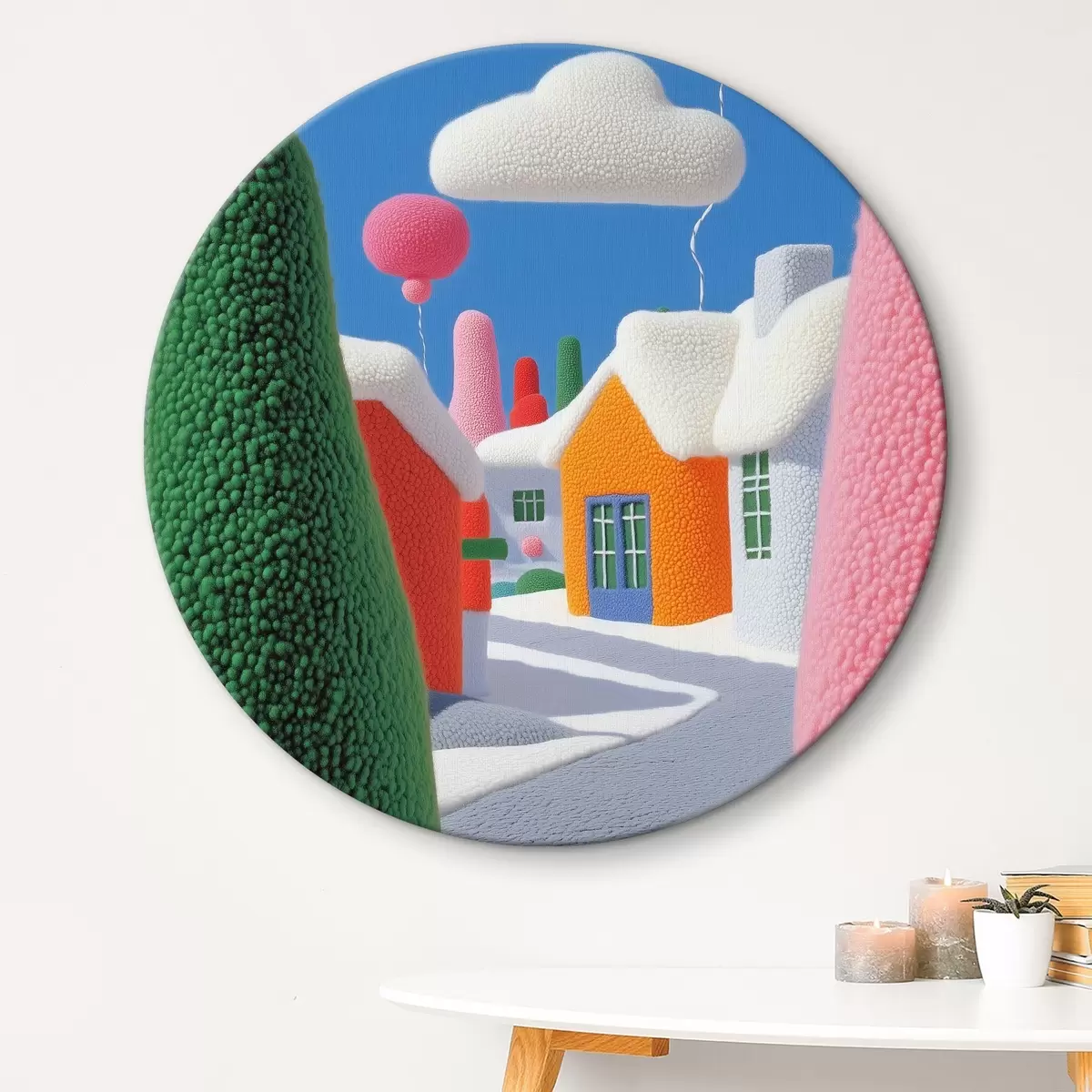 Runde Wandbilder Straße mit Wolken und Filzluftballons Nr r40970