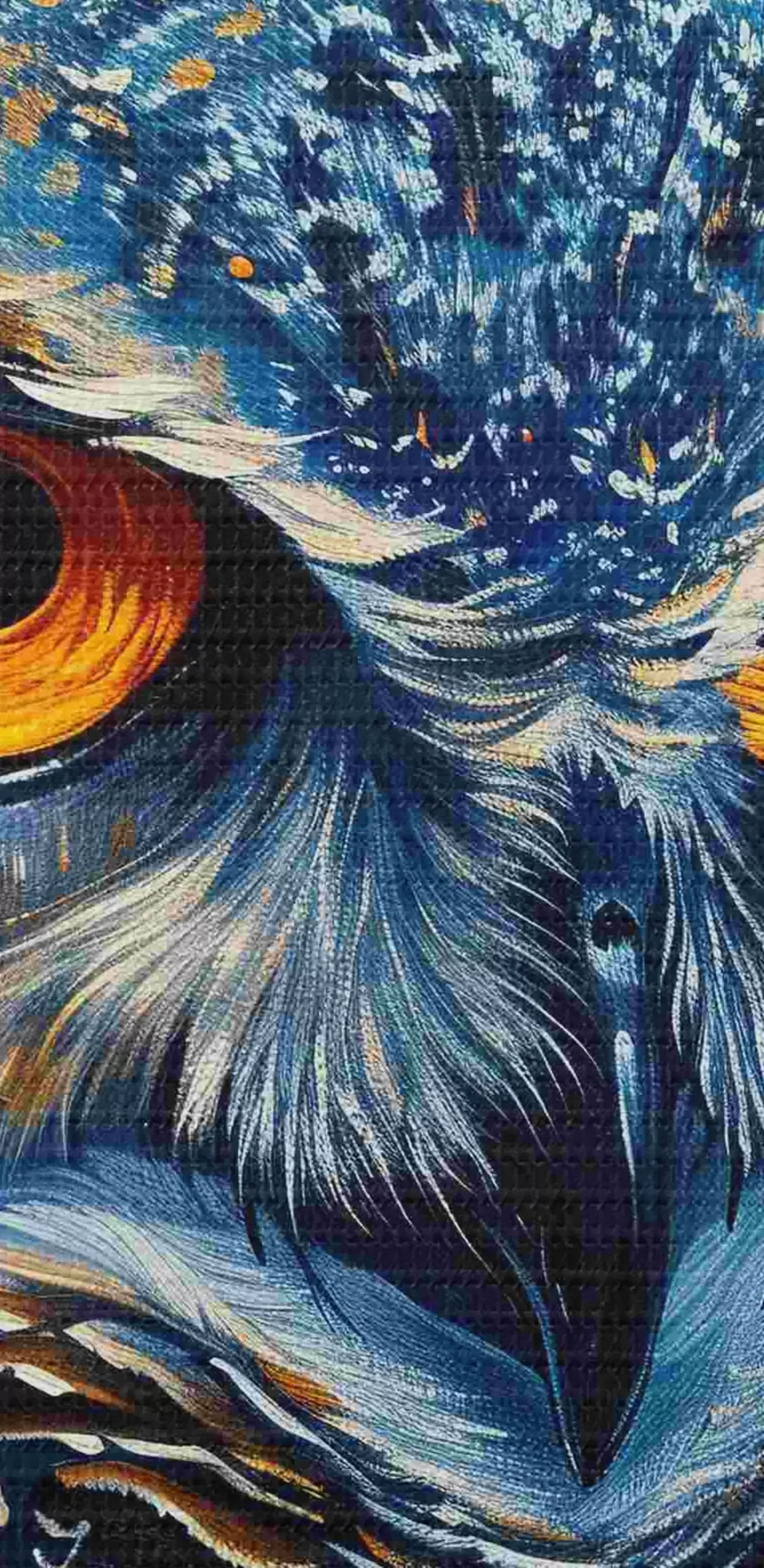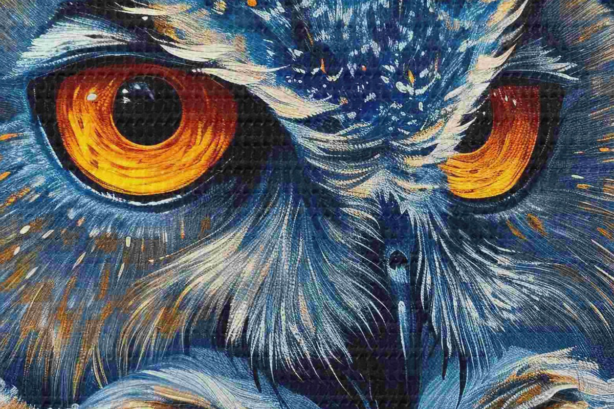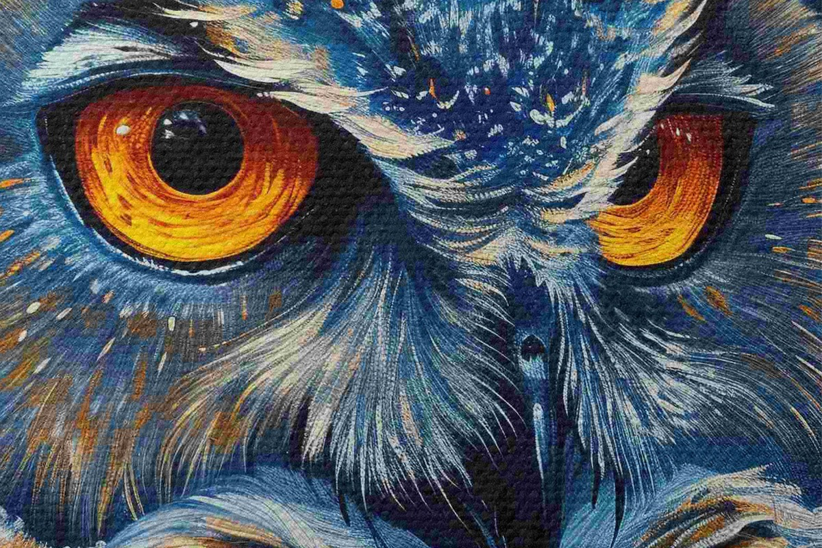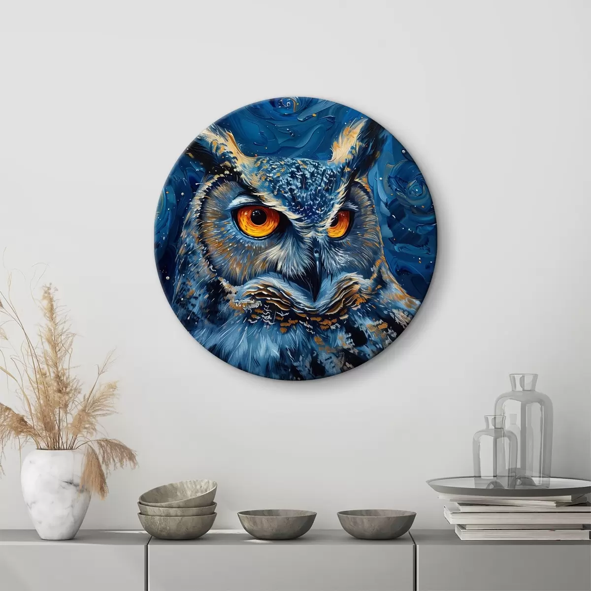 Runde Wandbilder Der nächtliche Blick einer Eule auf den Himmel im Stil von Van Gogh r40982