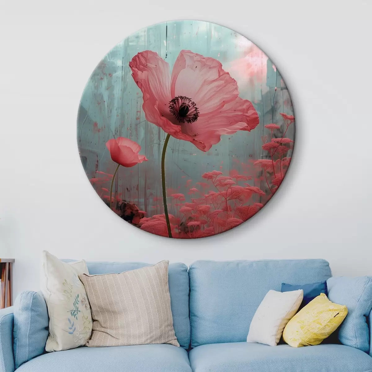 Runde Wandbilder Mohnblumen mit futuristischem Charakter r40988