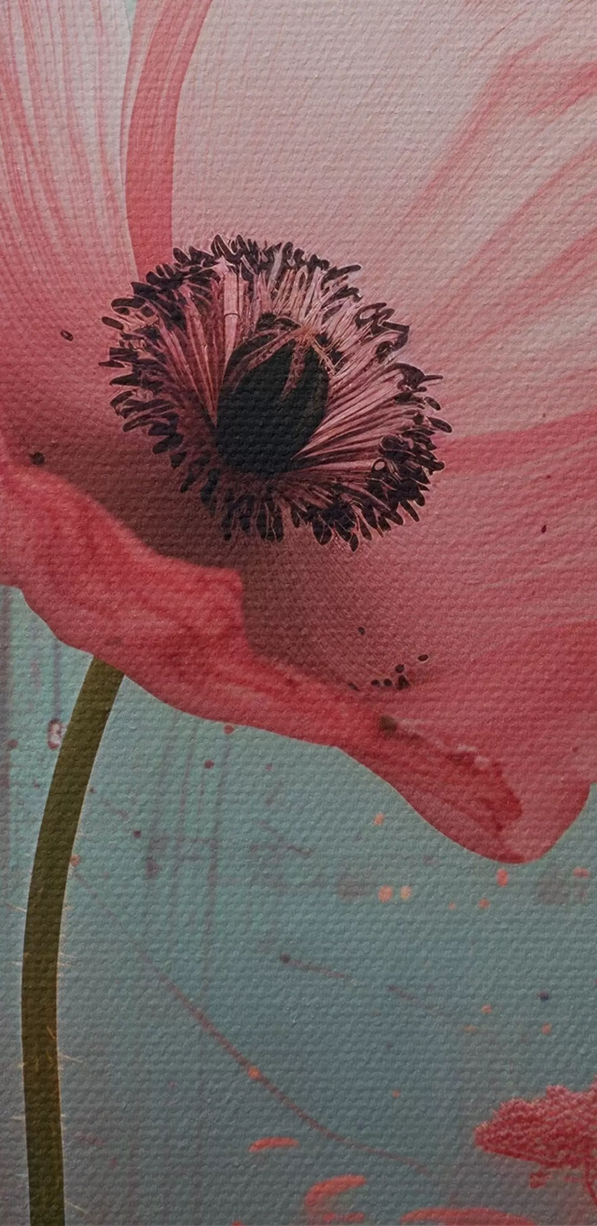 Drei Materialtypen stehen zur Verfügung: Economic Canvas - ein dichtes und haltbares Material für den Digitaldruck, identisch mit Malerleinwand, wasserfeste Oberfläche, realistische Wiedergabe von Details, mittelkörniges Material. Premium Canvas - die Textur ähnelt der einer Malerleinwand (verwobene kleine Fäden). Weiche, detaillierte Wiedergabe des Bildes auf einer matten Oberfläche. Eco-Premium - hochwertiges Gewebe aus 100% Baumwolle. Dank der natürlichen Baumwollfasern ist das Material langlebig und verschleißfest. Hervorragende Farbwiedergabe und Detailtreue.