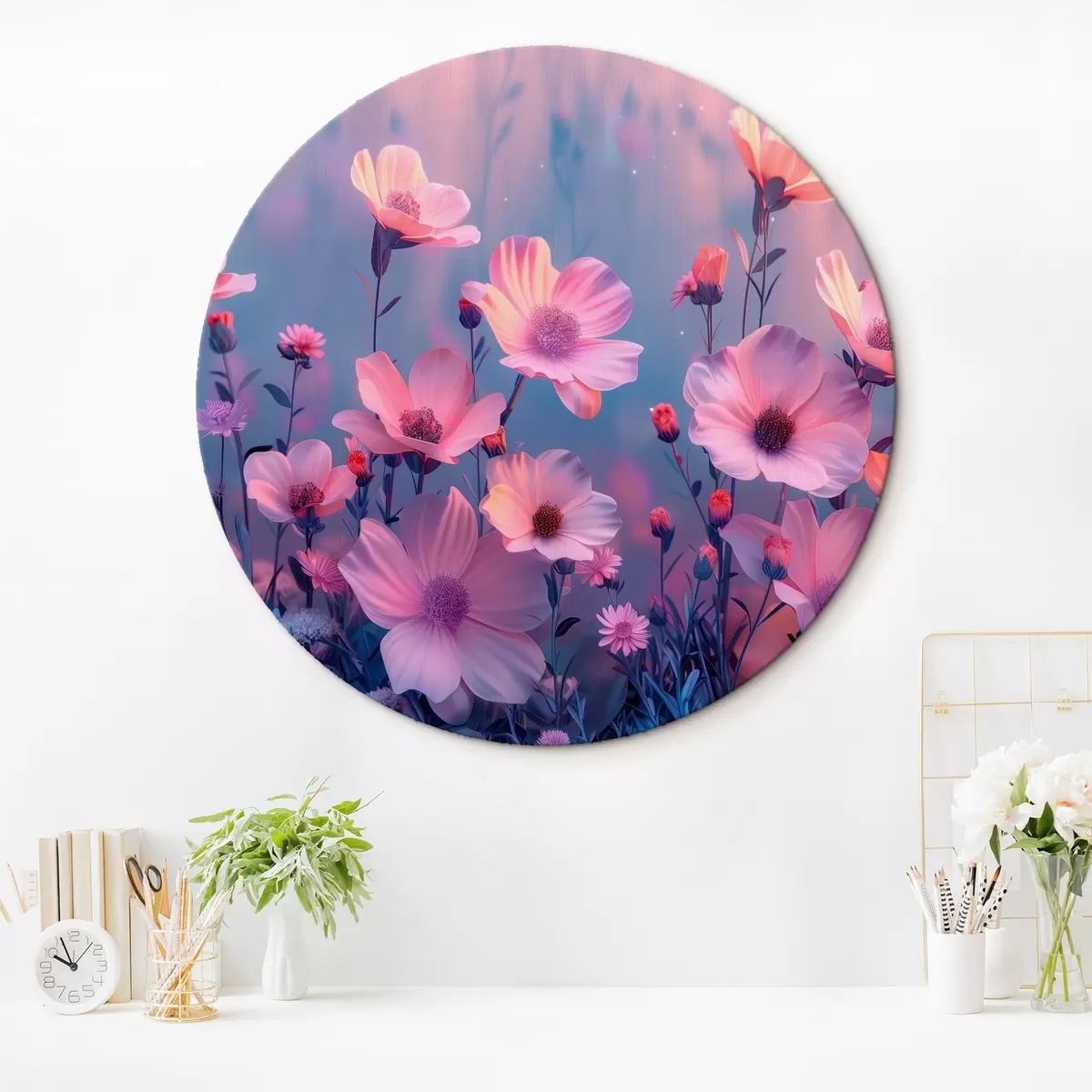 Runde Wandbilder Märchenhafte Blumen in rosa und blauen Tönen Nr r40990