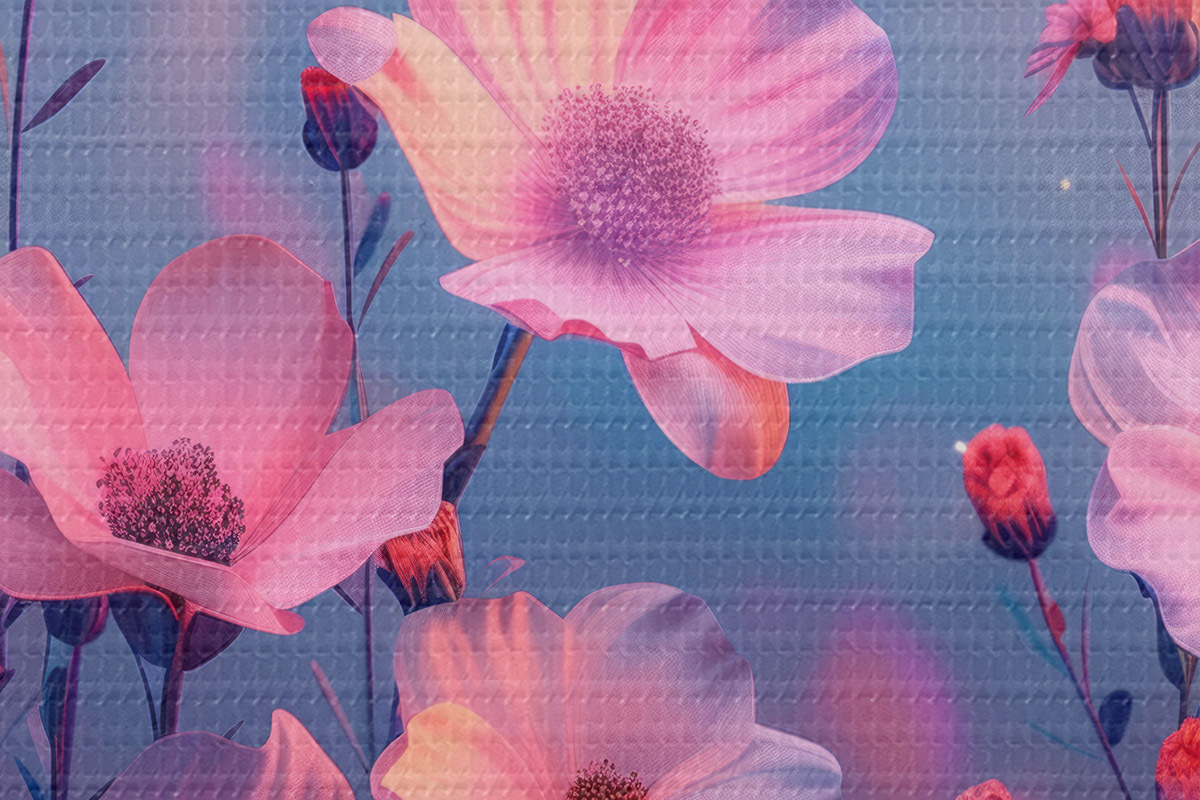 Runde Wandbilder Märchenhafte Blumen in rosa und blauen Tönen r40990