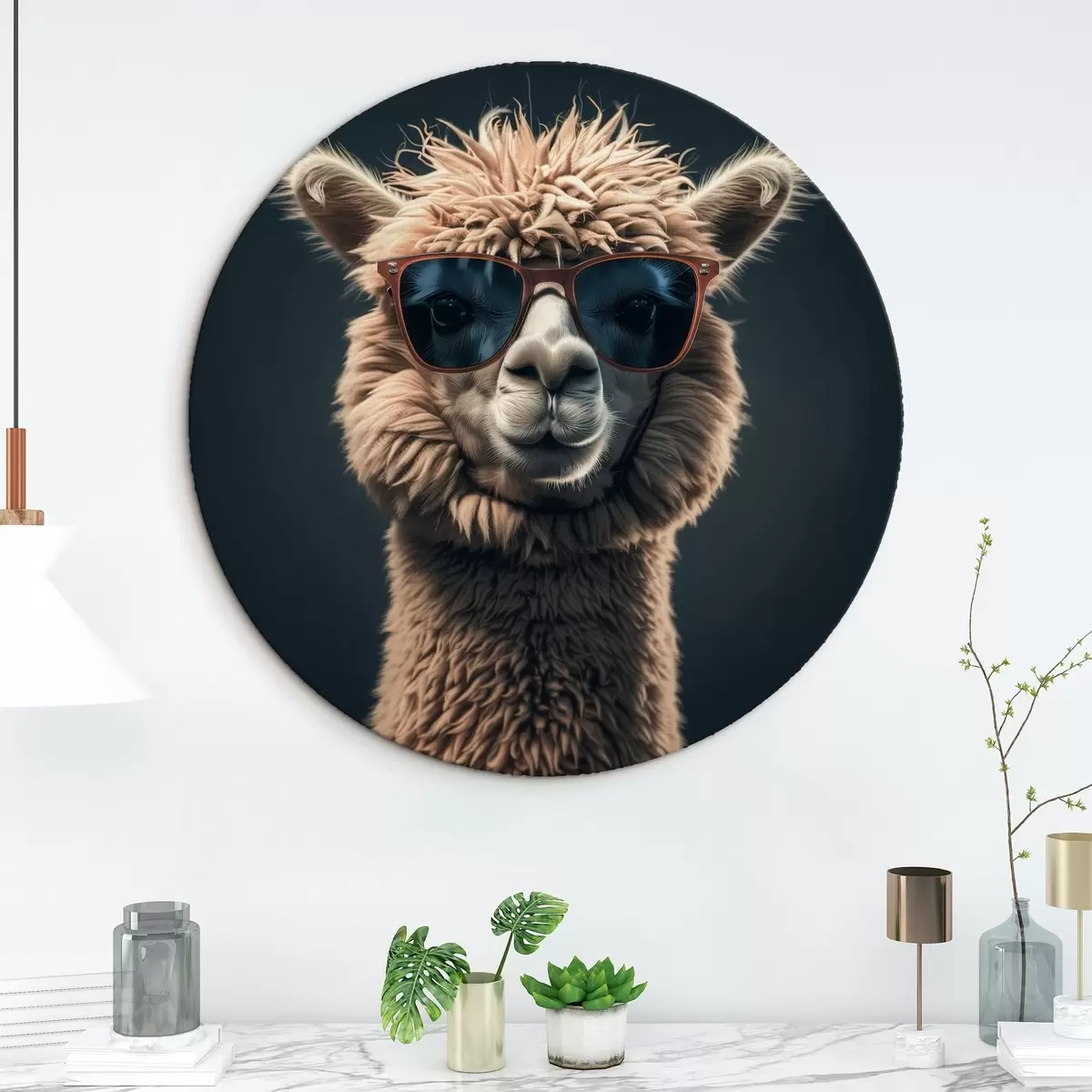 Runde Wandbilder Stylisches Lama mit Brille r40995