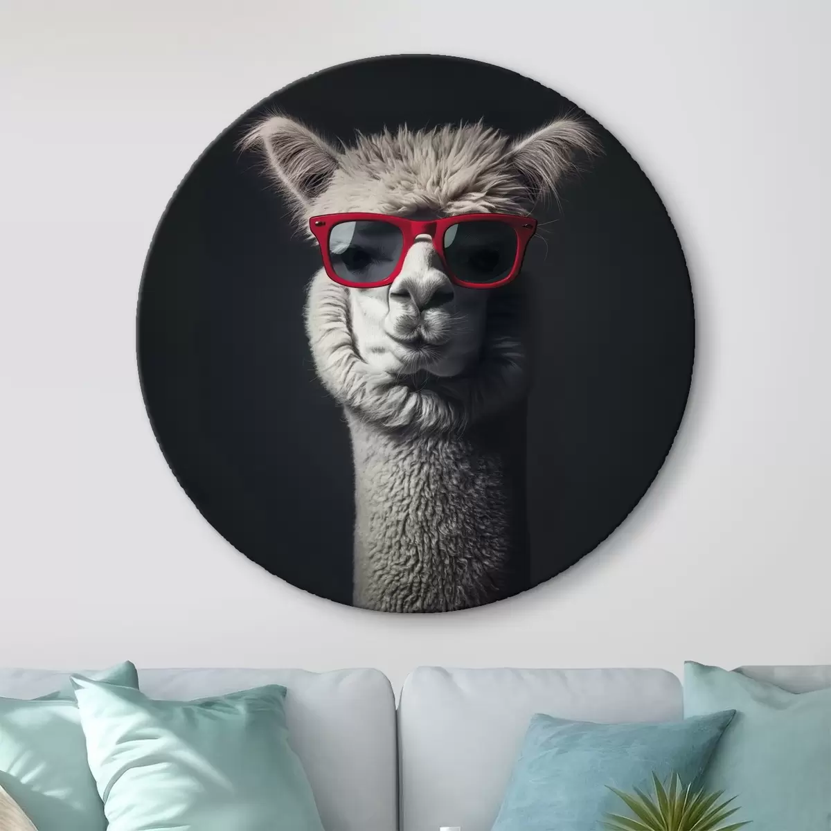 Runde Wandbilder Graues Lama mit roter Brille Nr r40996