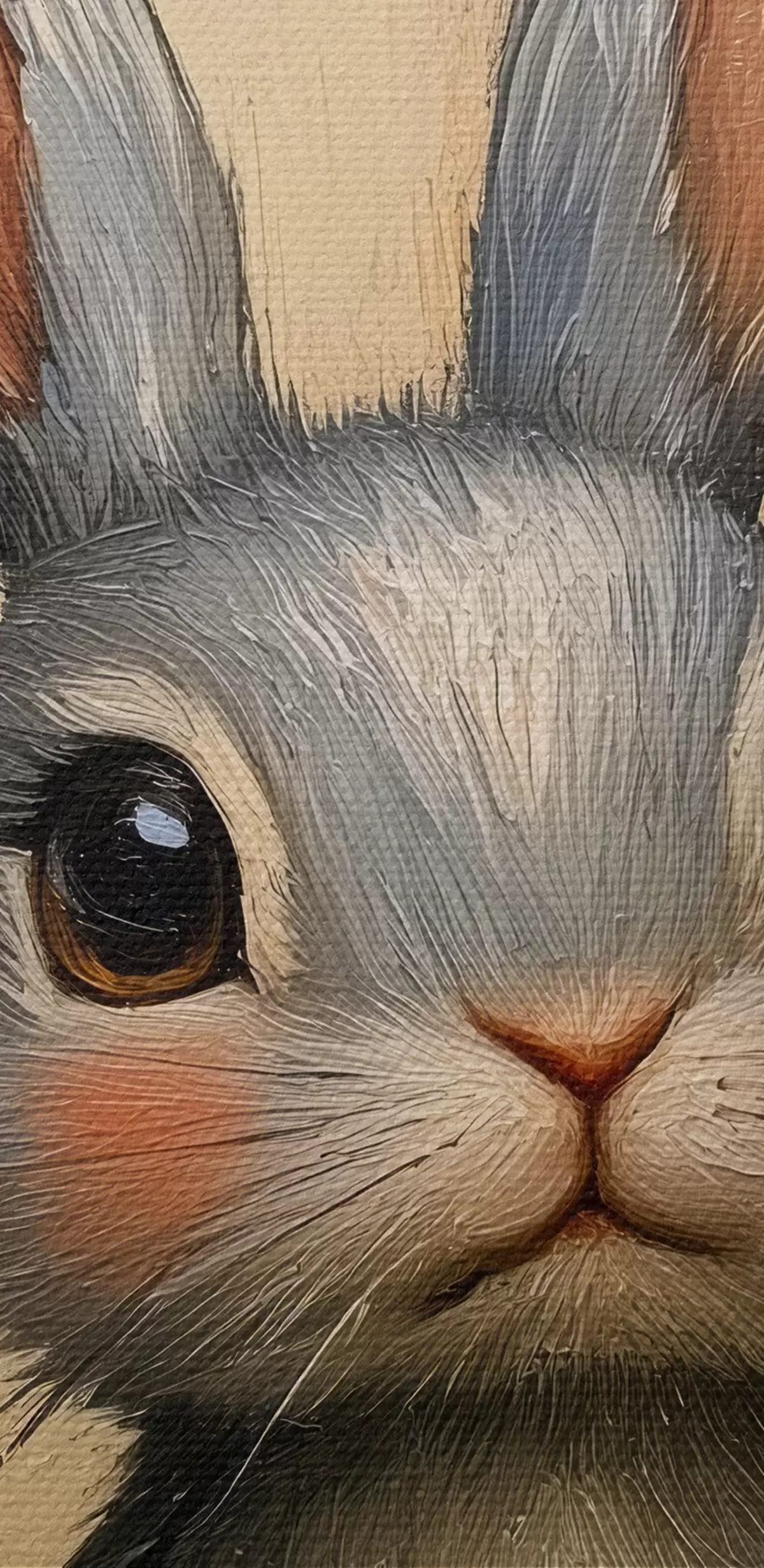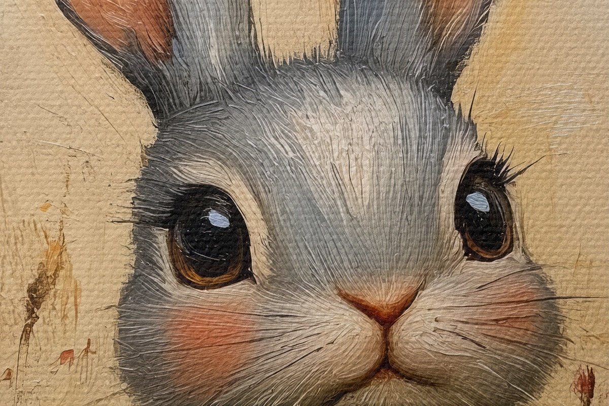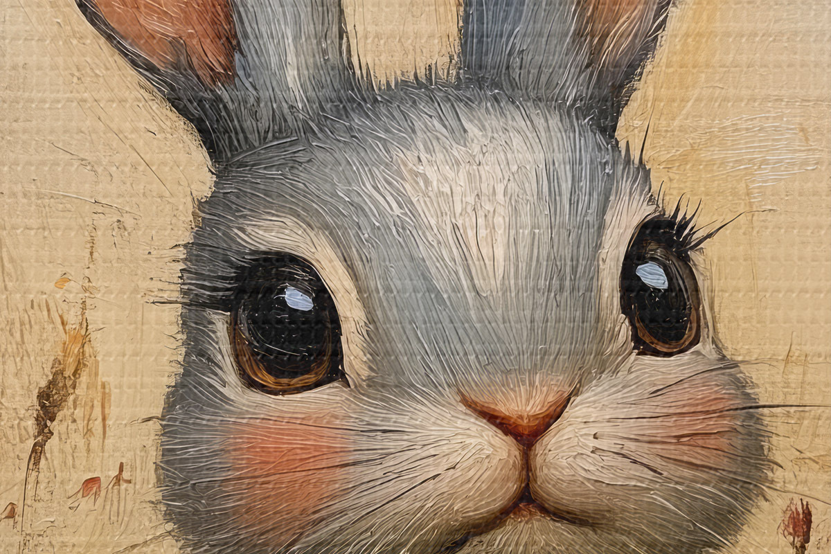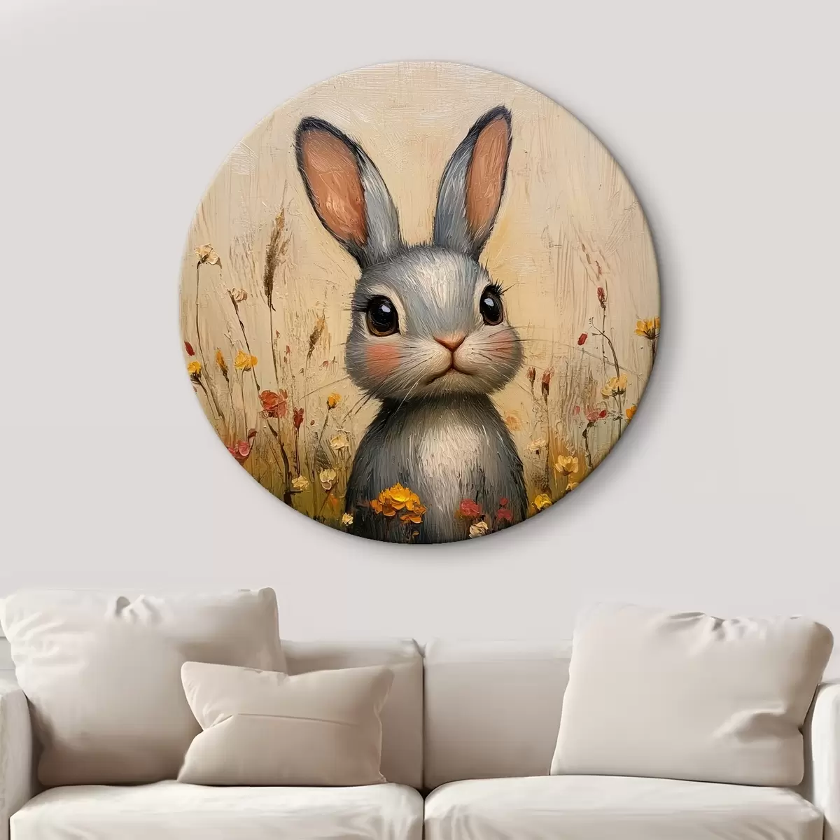 Runde Wandbilder Kaninchen auf dem Feld zwischen Blumen mit Pinselstrichen Nr r40999