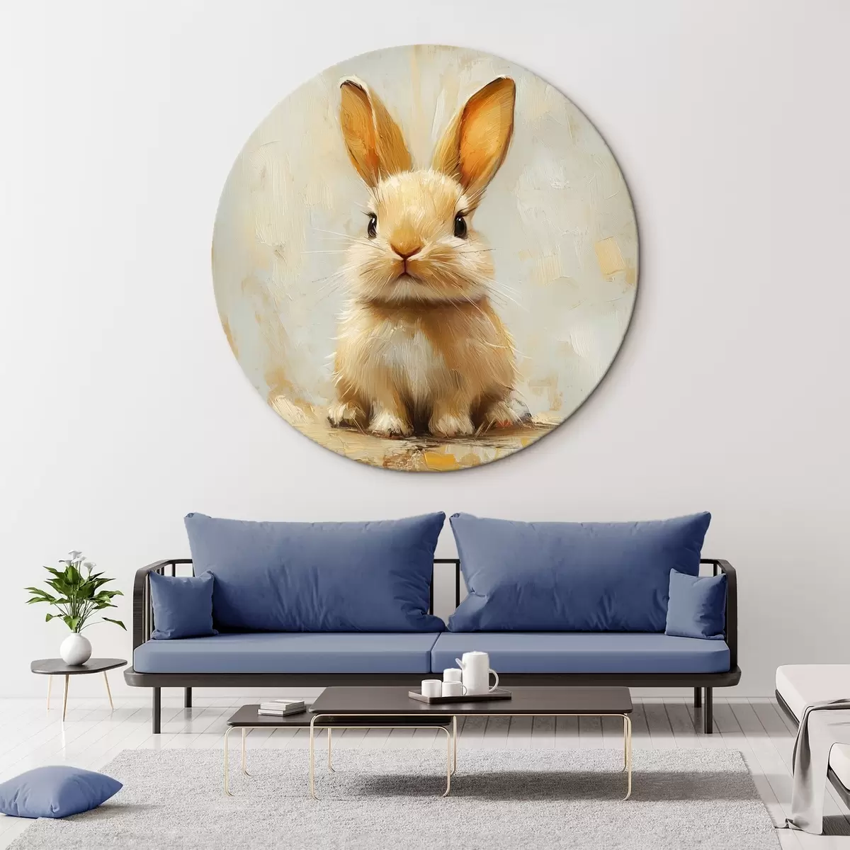 Runde Wandbilder Ein beiger Hase auf hellem Hintergrund mit kräftigen Pinselstrichen r41000