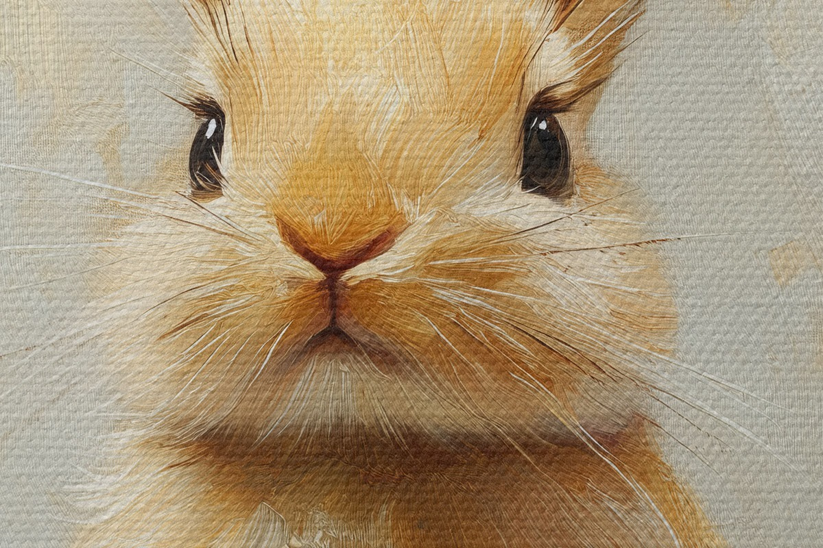 Runde Wandbilder Ein beiger Hase auf hellem Hintergrund mit kräftigen Pinselstrichen Nr r41000