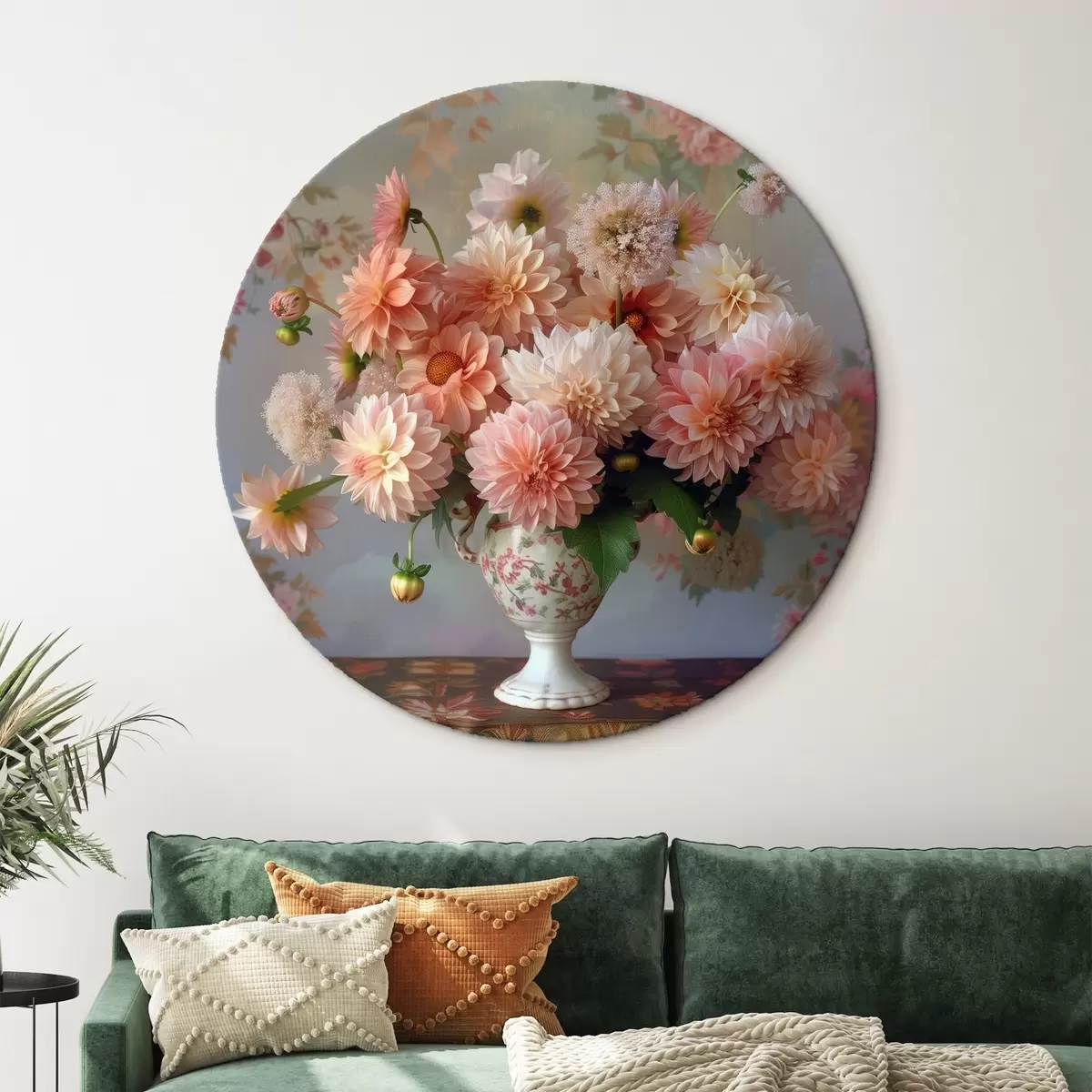 Runde Wandbilder Ein zarter Strauß Chrysanthemen in einer Vase r41002