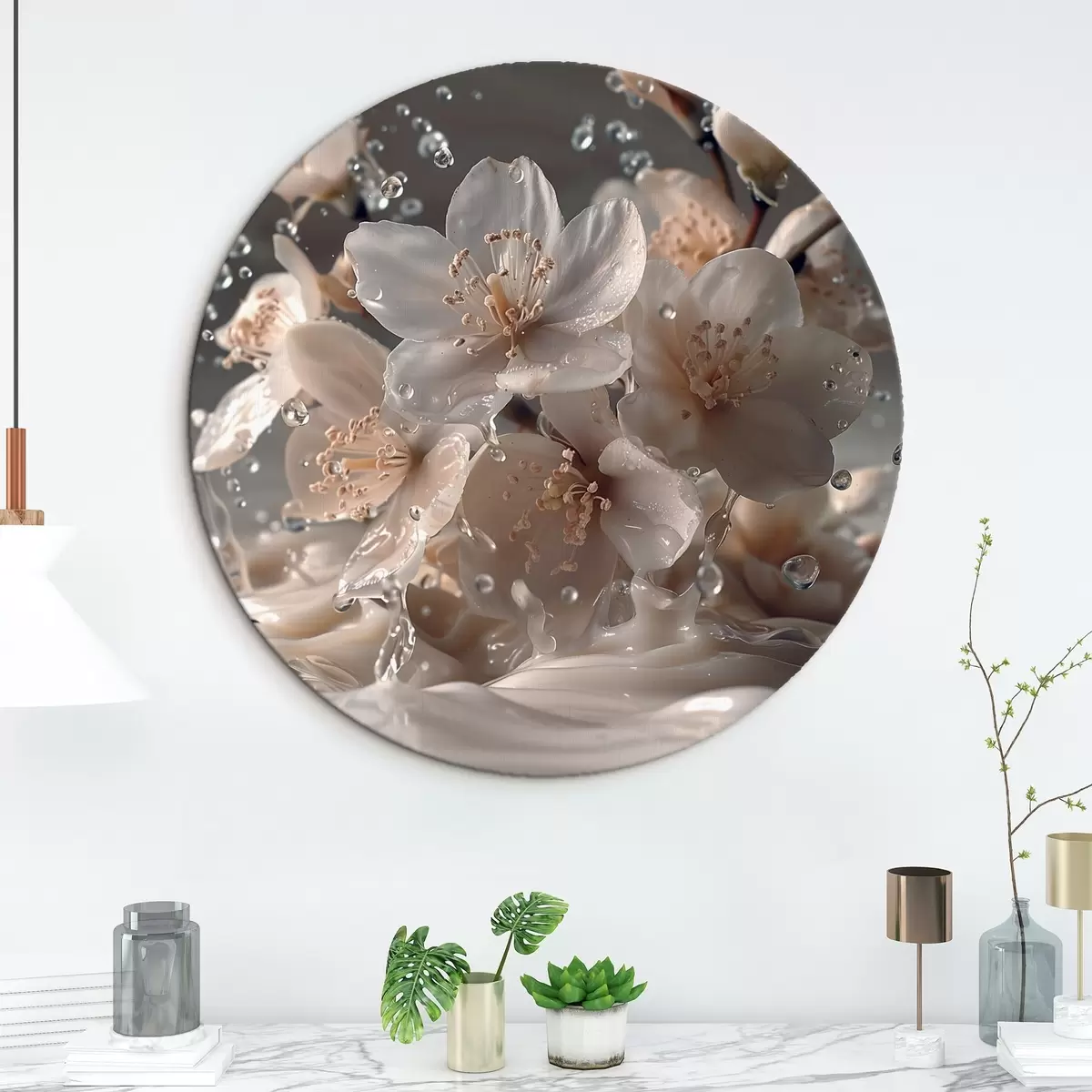 Runde Wandbilder Jasminblüten in einem Strudel aus Tropfen r41003