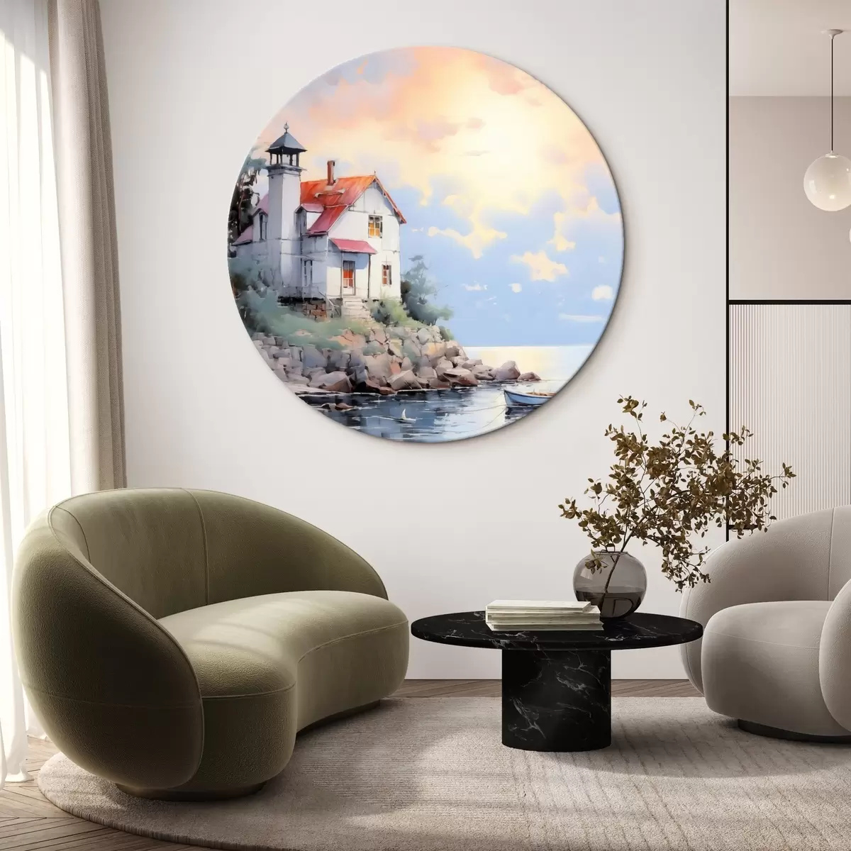 Runde Wandbilder Strandhaus am Meer bei Sonnenuntergang r41010