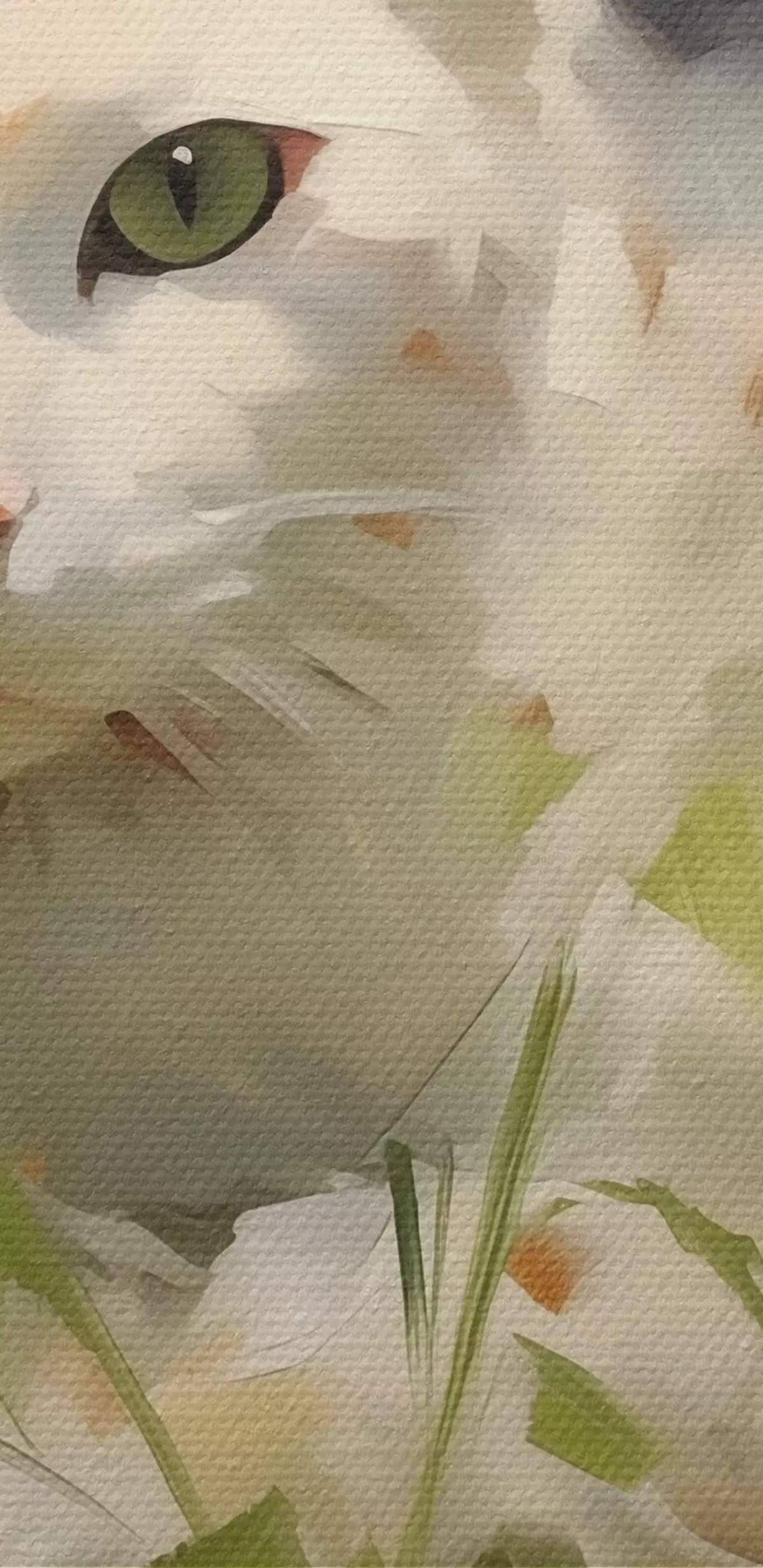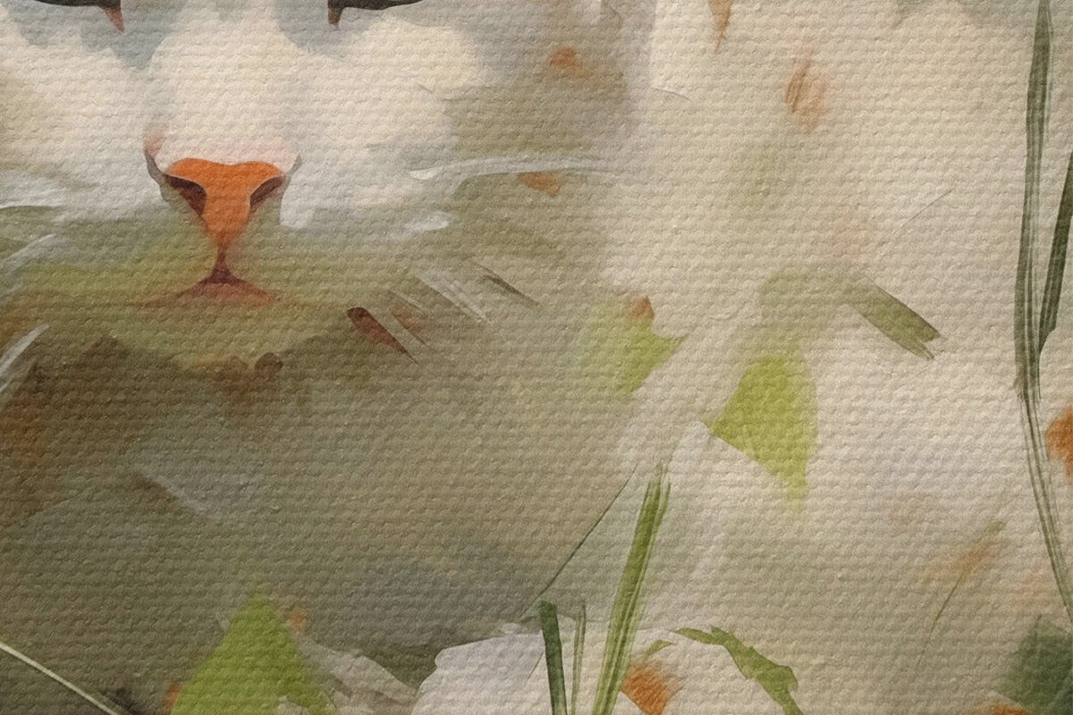 Runde Wandbilder Weiße Katze im Gras liegend, Nachahmung von Pinselstrichen r41017