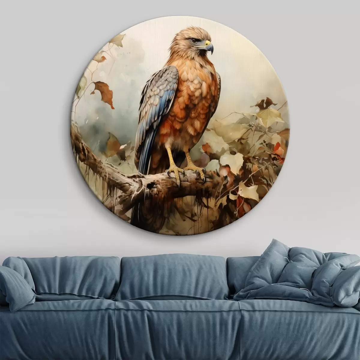 Runde Wandbilder Falke auf einem Ast sitzend Aquarell r41021