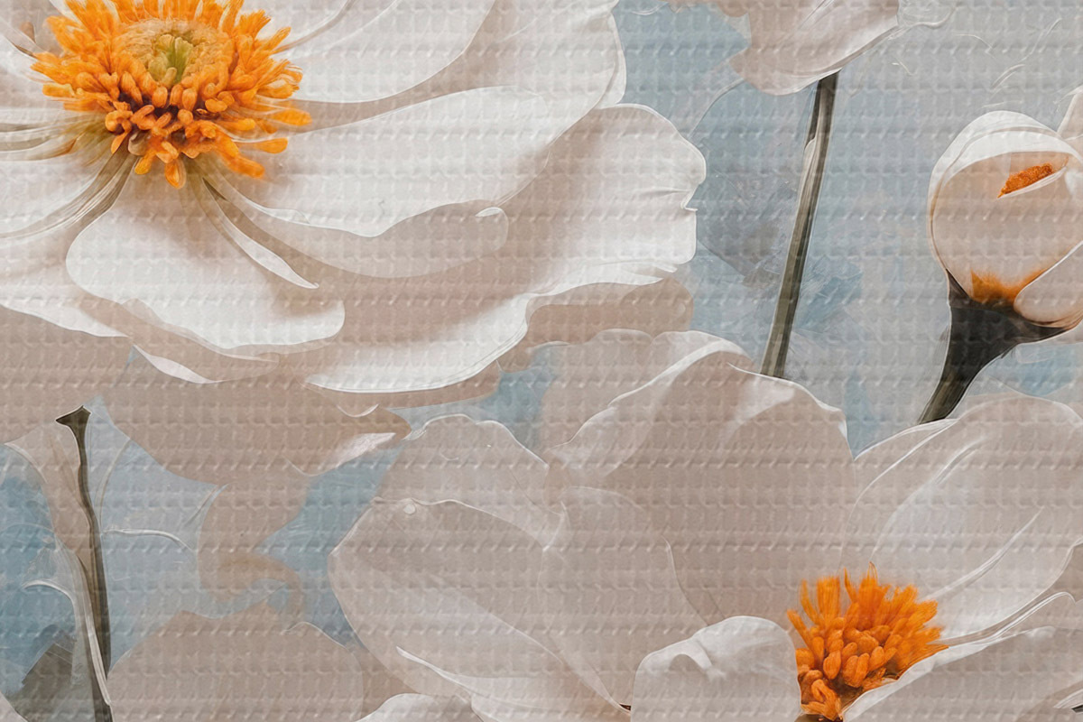 Runde Wandbilder Weiße Blumen auf einem blauen und weißen Öl-Hintergrund r41041