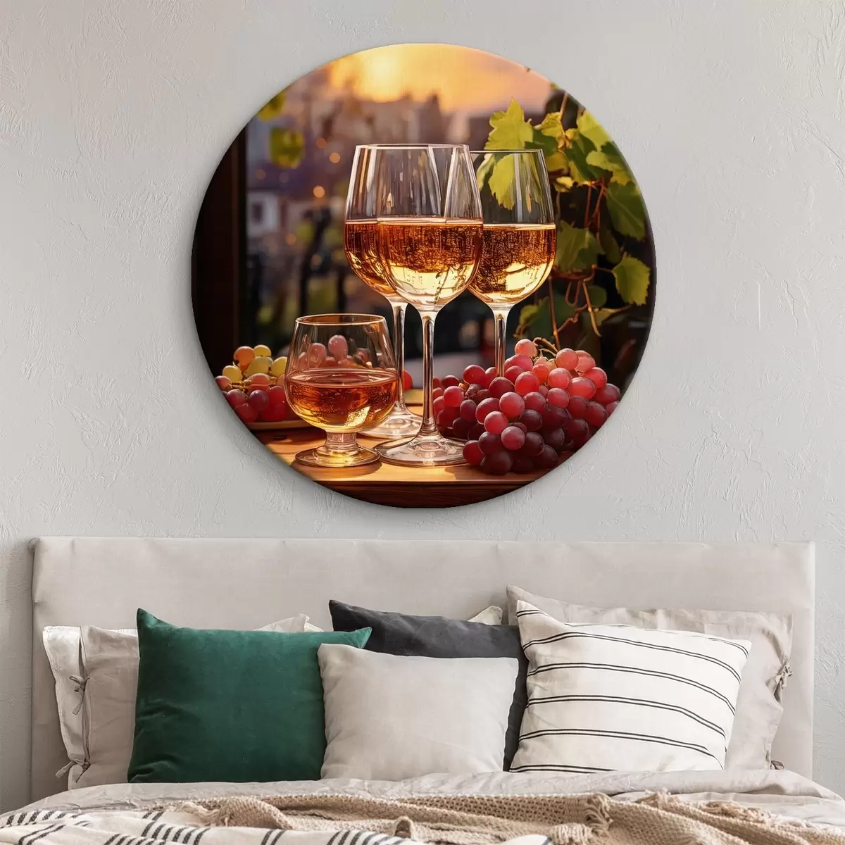 Runde Wandbilder gläser mit Wein, Weintrauben auf dem Tisch, Stillleben r41104