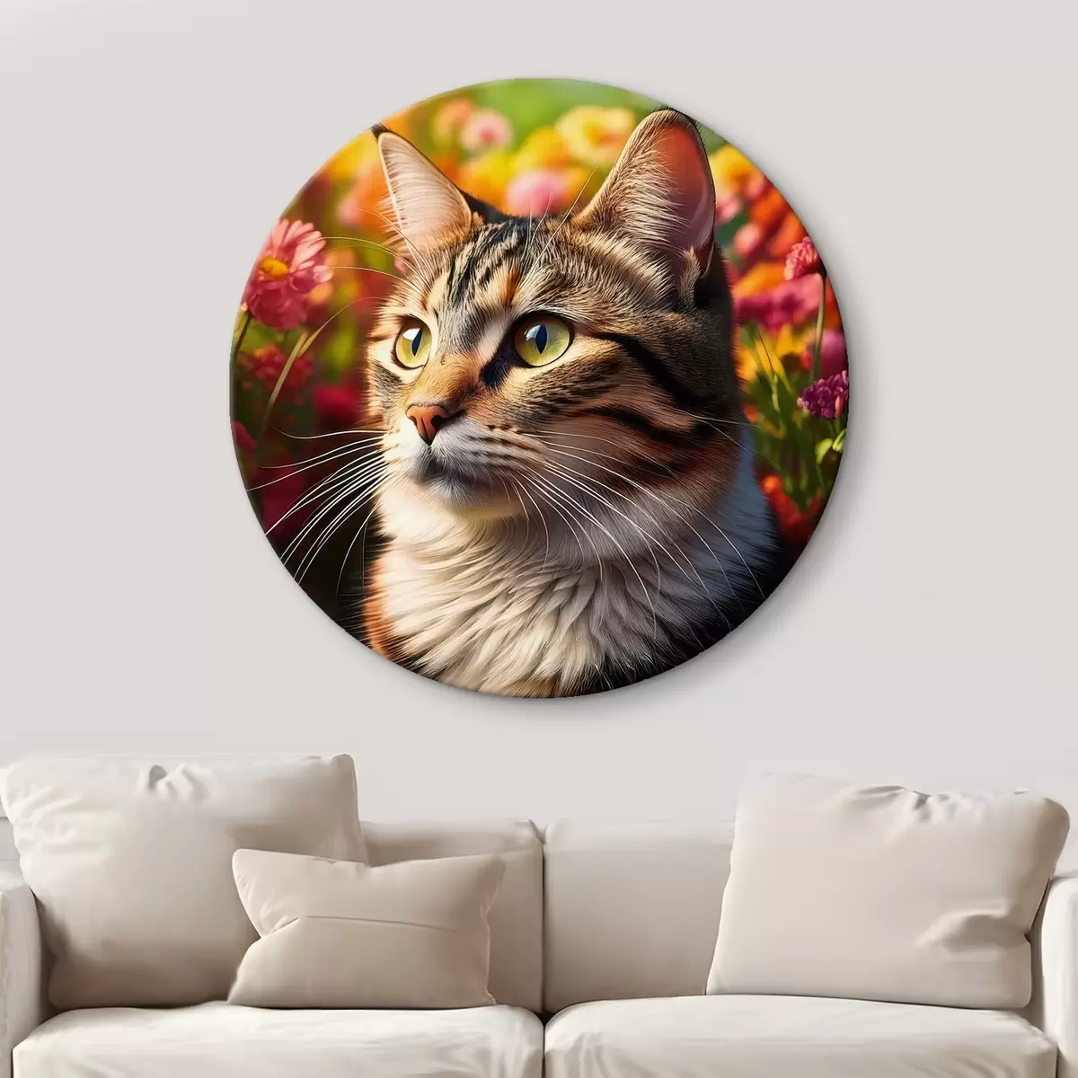 Runde Wandbilder große Katze, Katzenporträt, Katze und Blumen Nr r41106