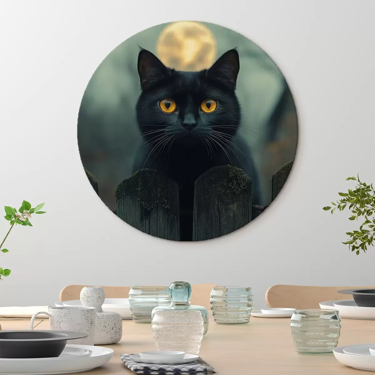Runde Wandbilder Schwarze Katze und Vollmond auf dem Hintergrund r41123