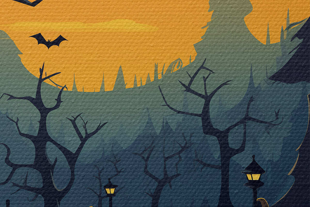 Runde Wandbilder Halloween, Pfad im Wald Nr r41135