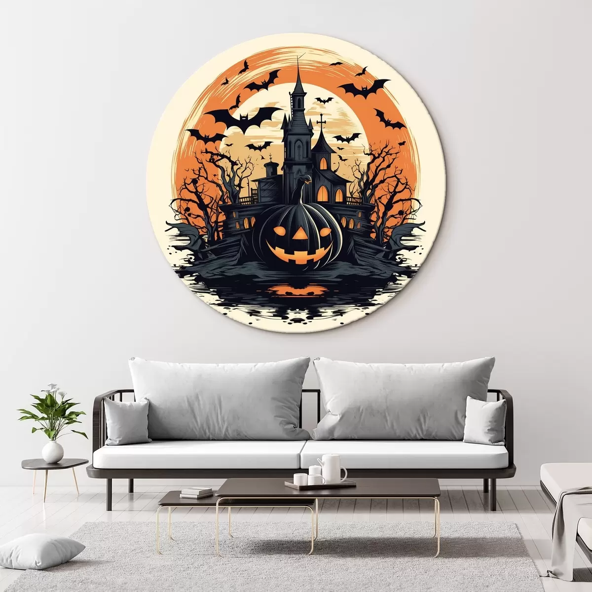 Runde Wandbilder Schloss, Fledermäuse und Kürbisse Nr r41137