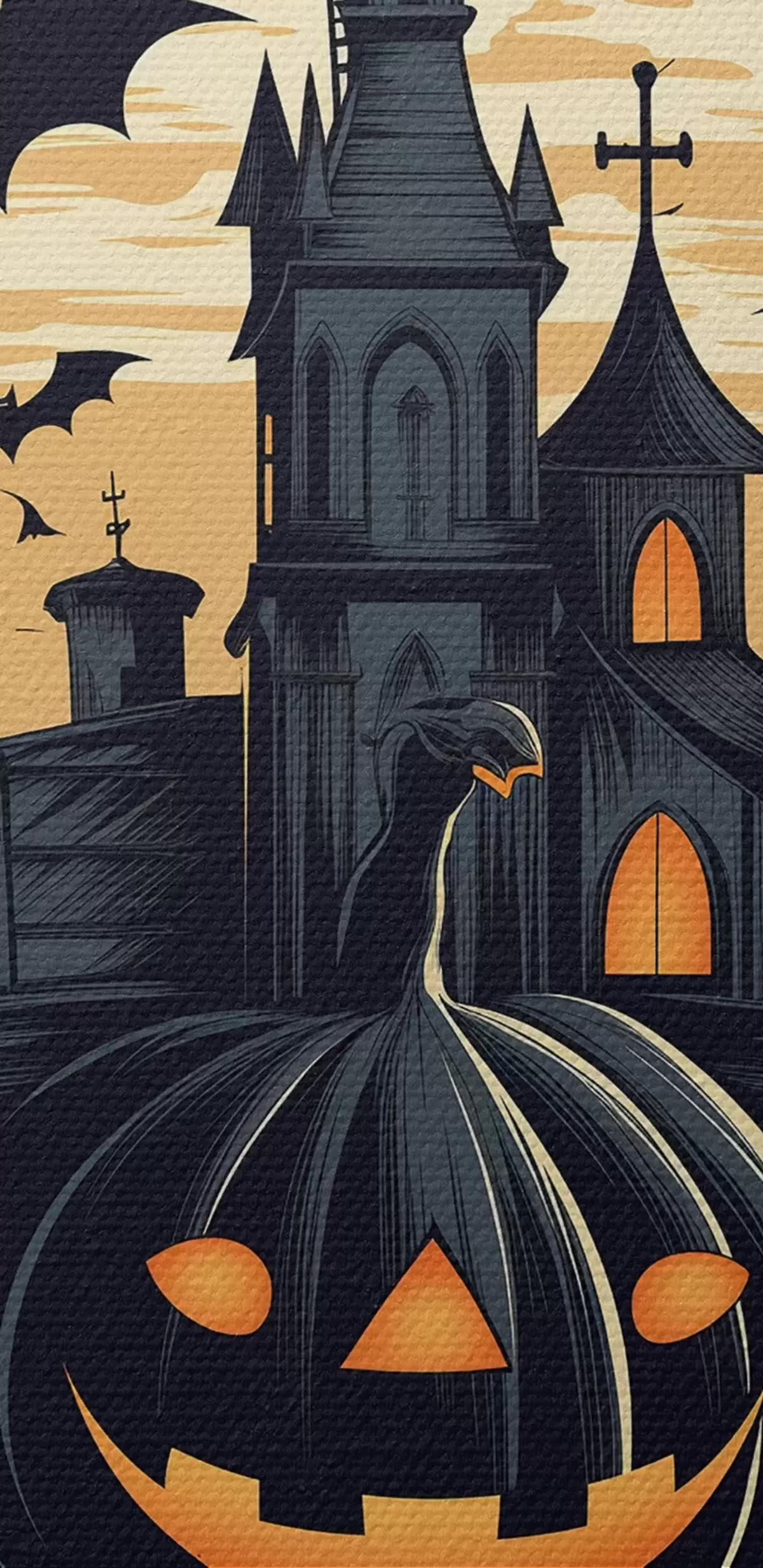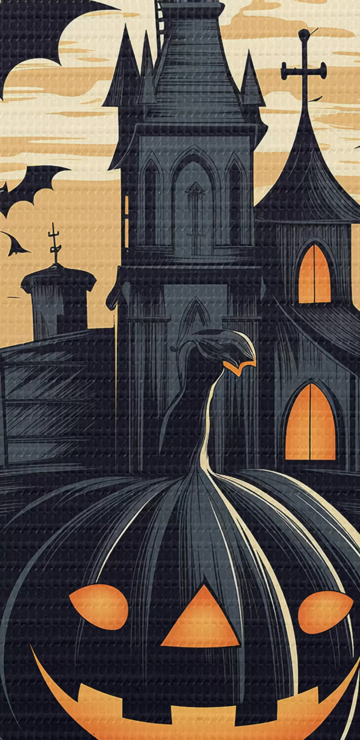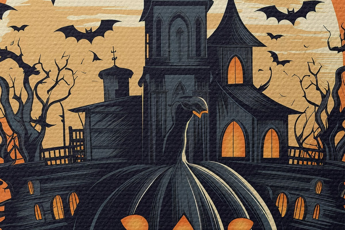 Runde Wandbilder Schloss, Fledermäuse und Kürbisse r41137