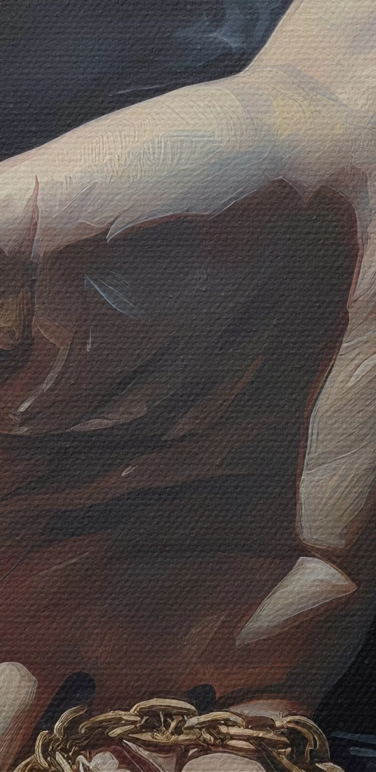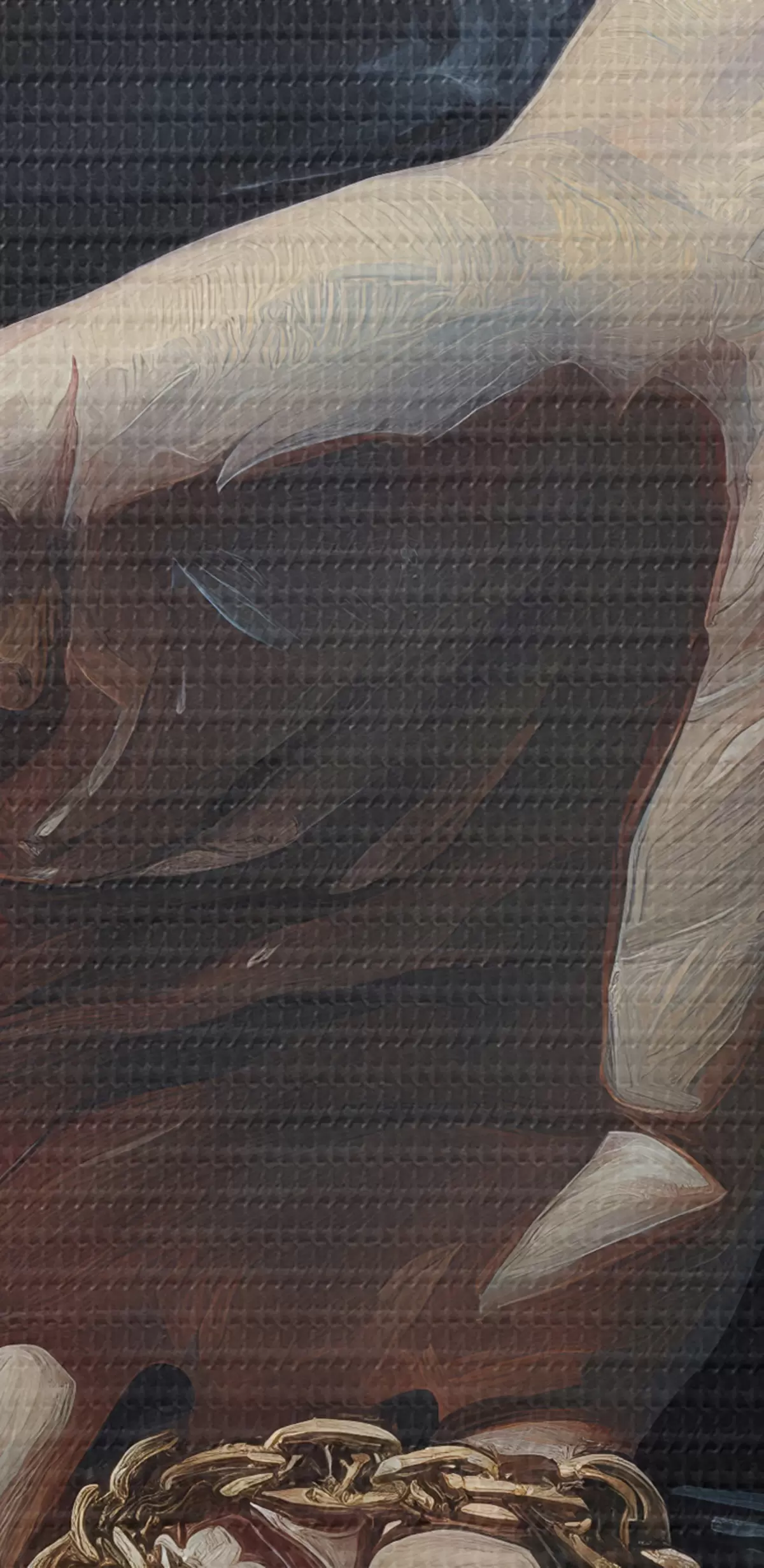 Um die Leinwand auf Keilrahmen zu spannen, ohne das Bild zu beschädigen, verwenden wir ein gespiegeltes Bild.
