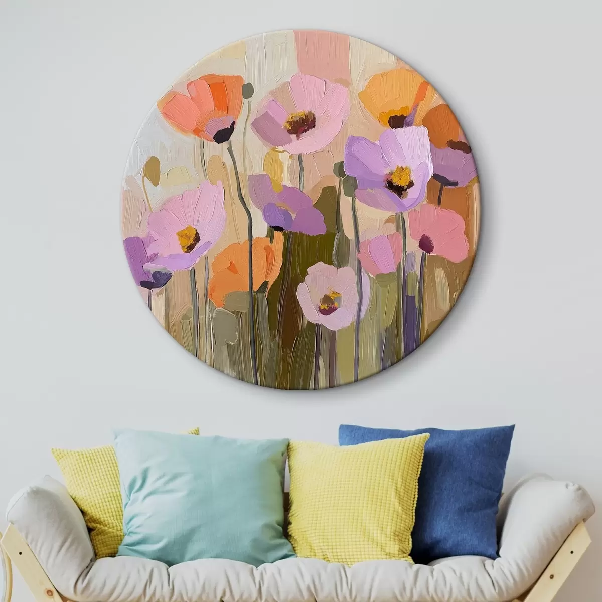 Runde Wandbilder Ein Acrylgemälde, das Herbstmohnblumen darstellt Nr r41158