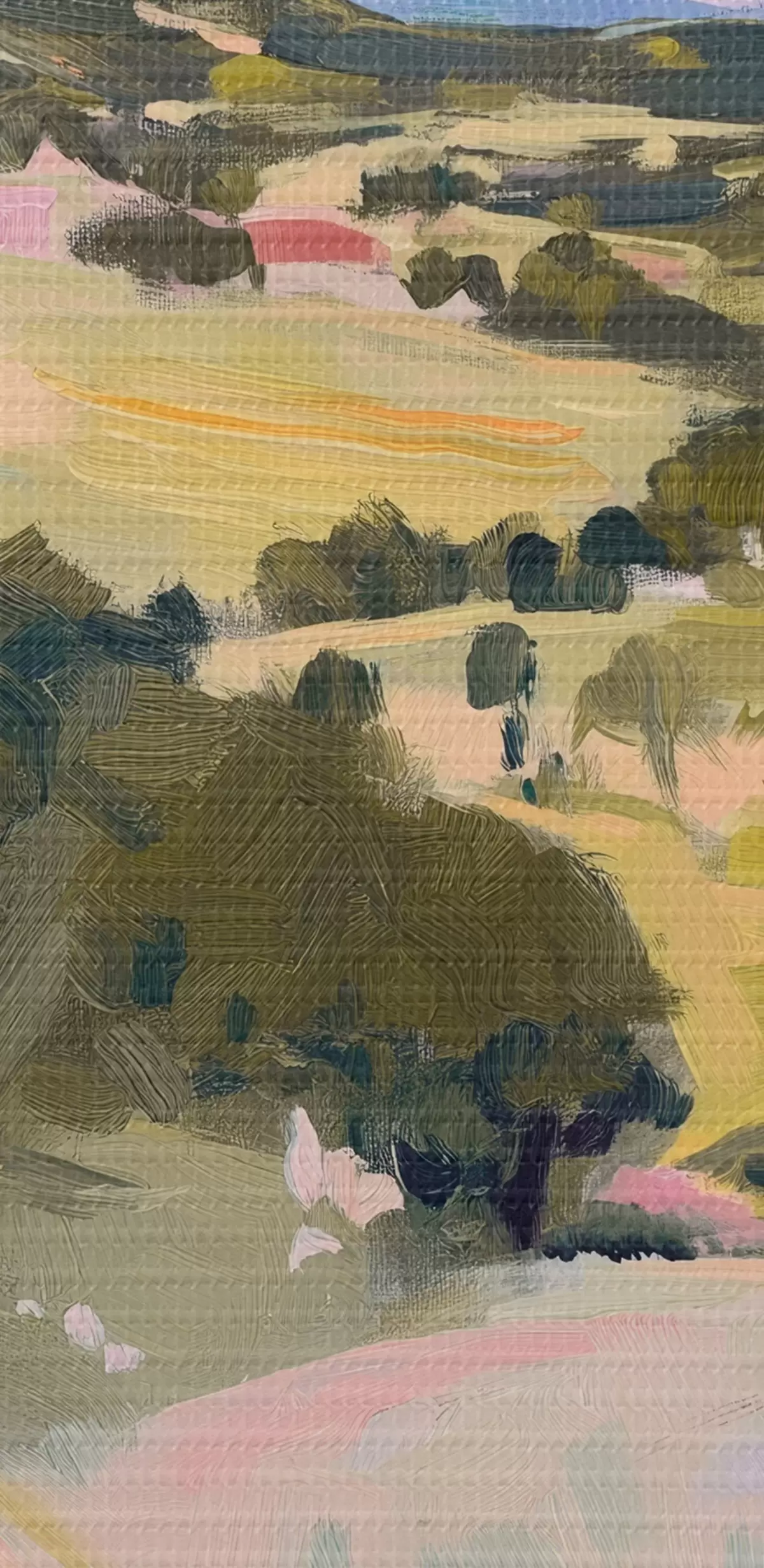 Das feine Fadengeflecht auf dieser Leinwand ähnelt der Oberfläche von professionellen Künstlerleinwänden.