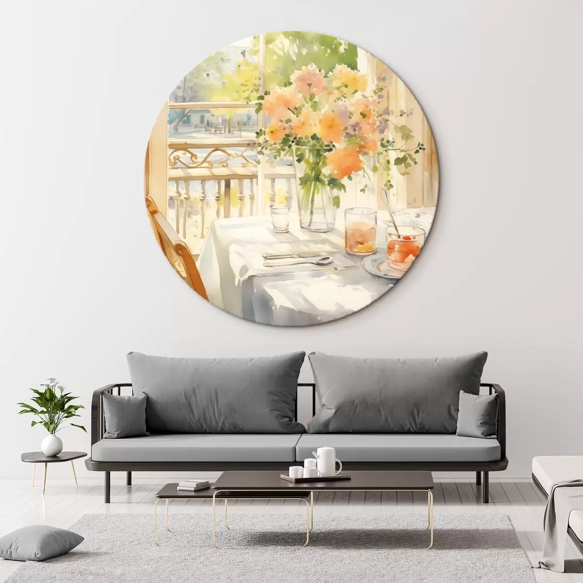 Runde Wandbilder Romantisches Abendessen, Aquarell, Boho-Stil, Blumen, Natur r41165