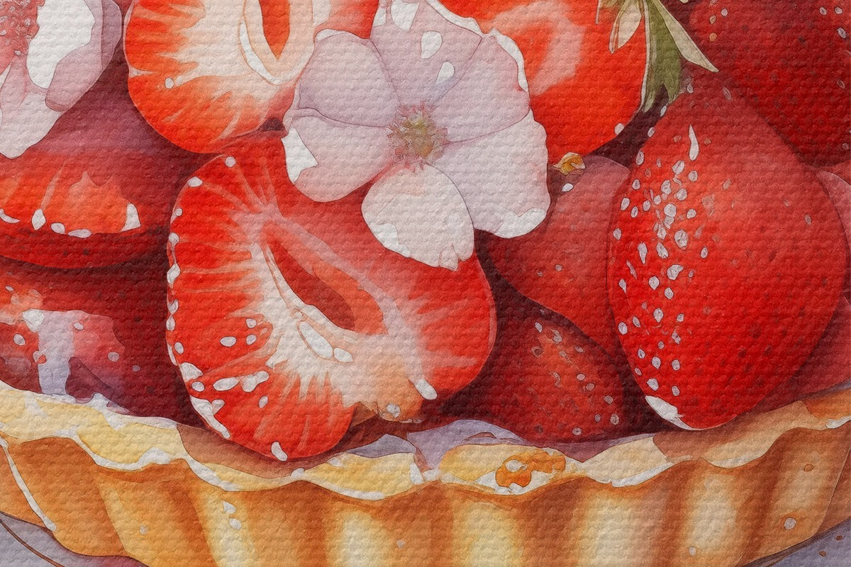 Runde Wandbilder Erdbeerkuchen, Aquarell, Blumen Nr r41177