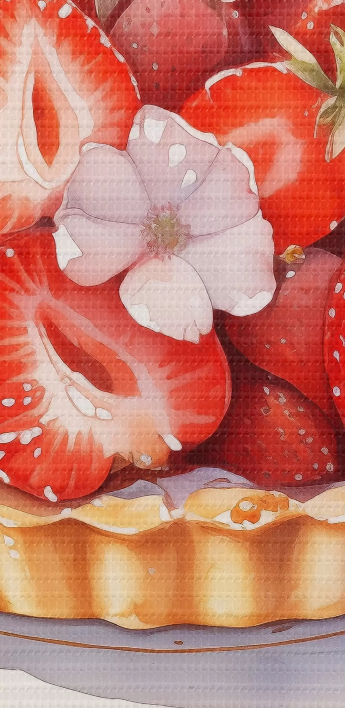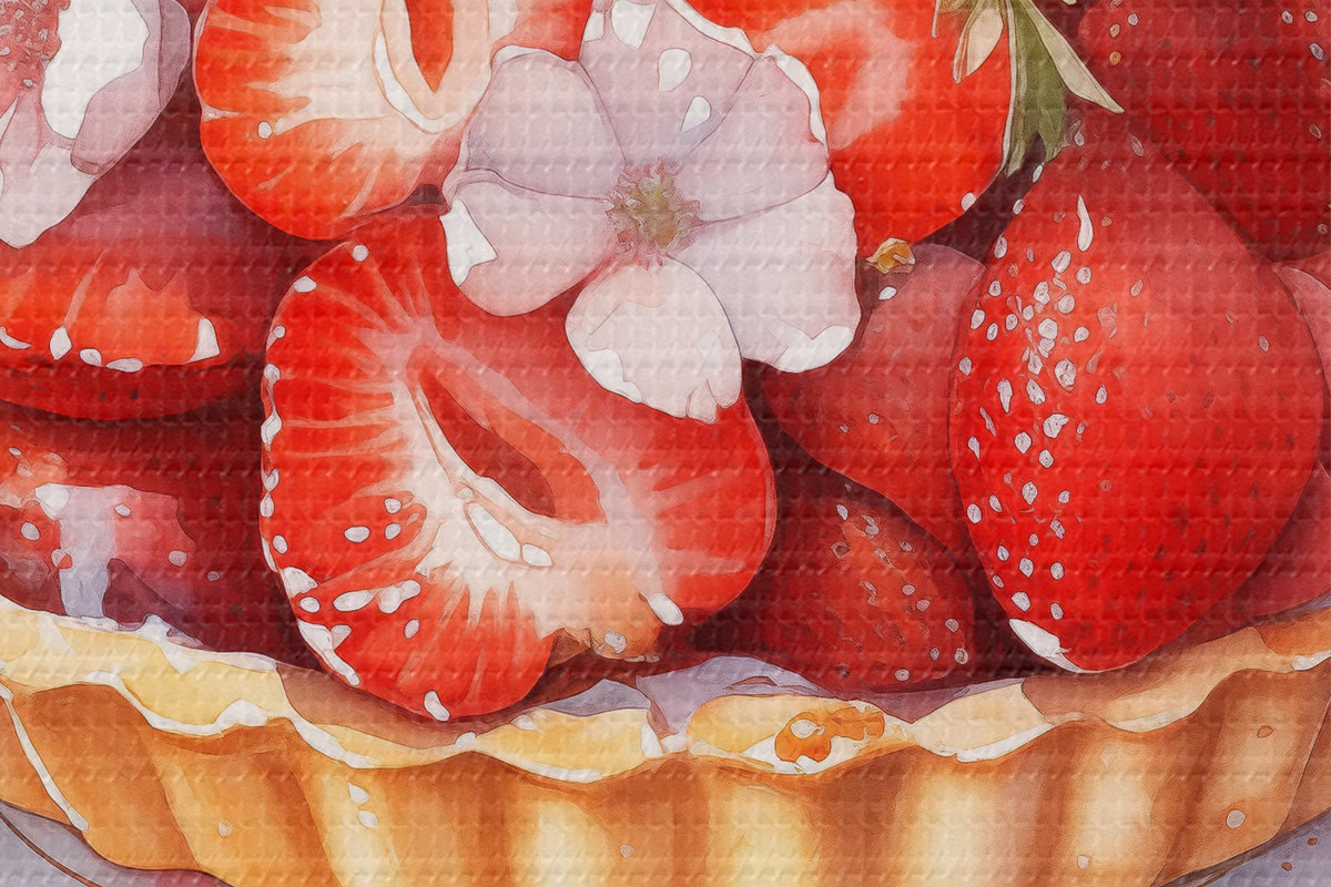 Runde Wandbilder Erdbeerkuchen, Aquarell, Blumen r41177