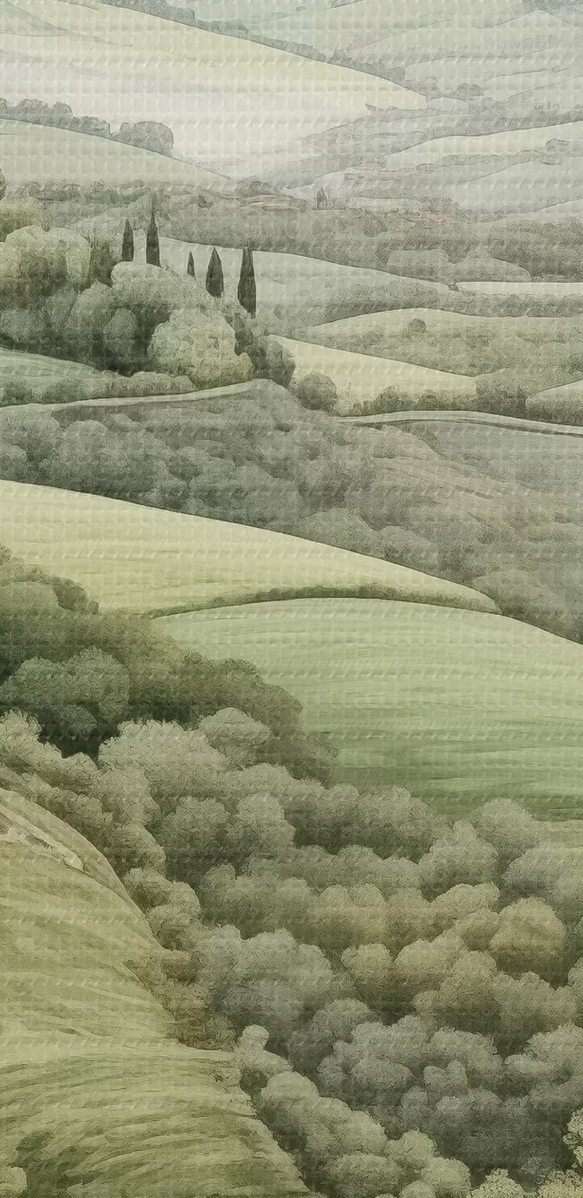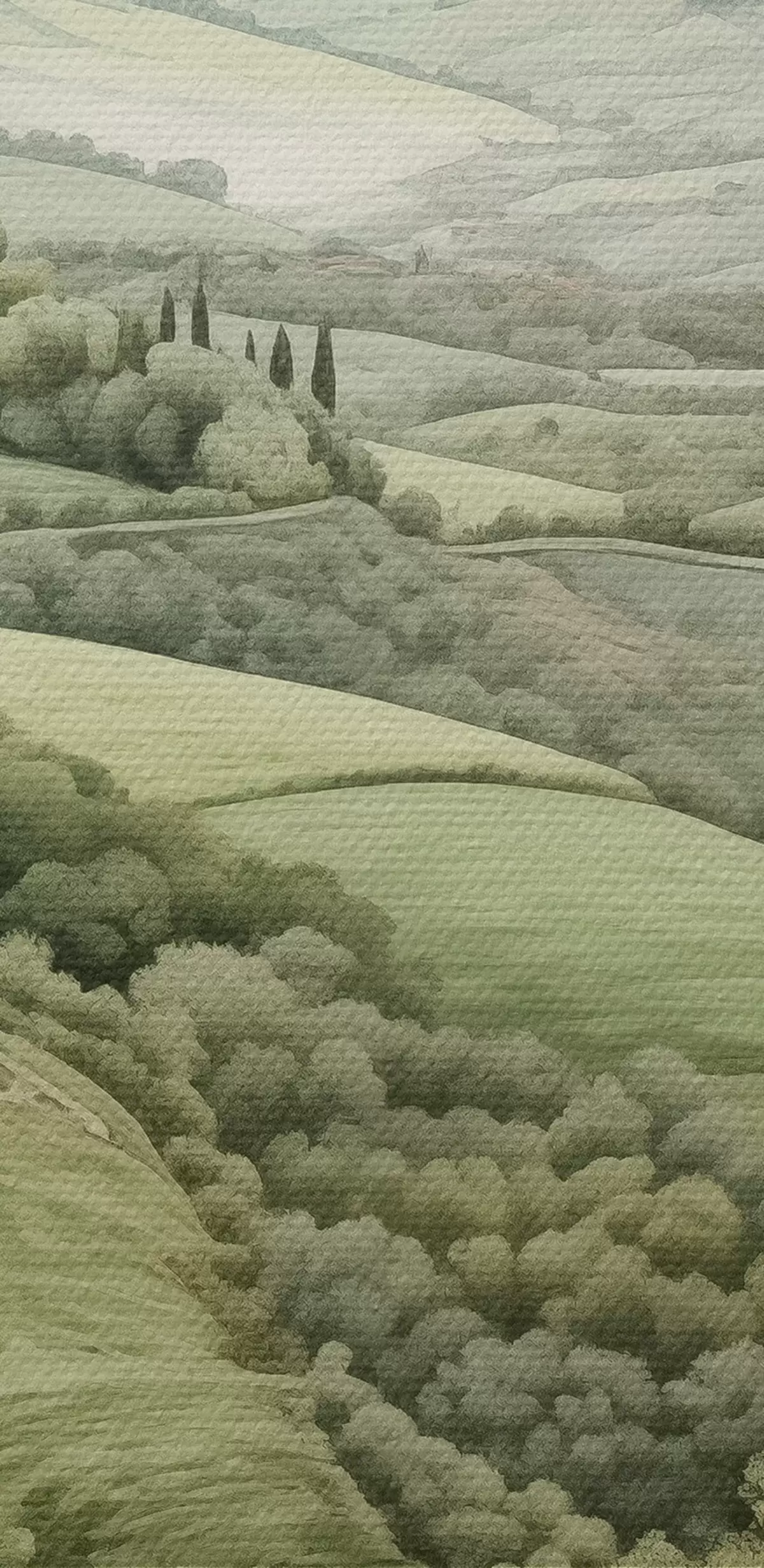 Runde Wandbilder Aquarelllandschaften mit Bäumen und Bergen, Toskana, Sommer r41222