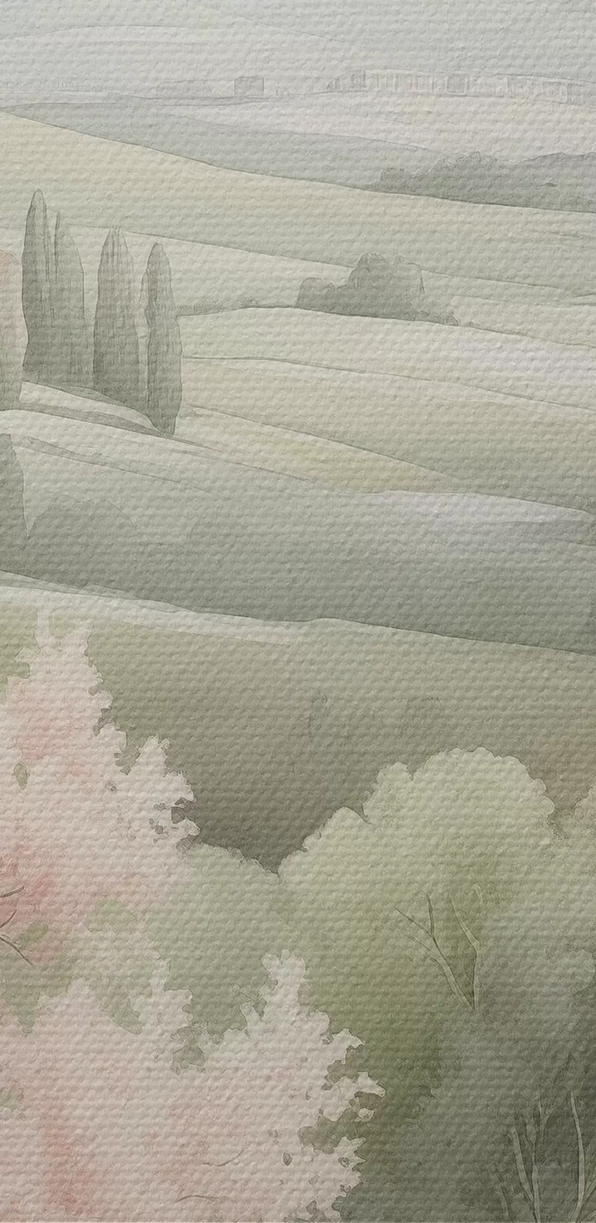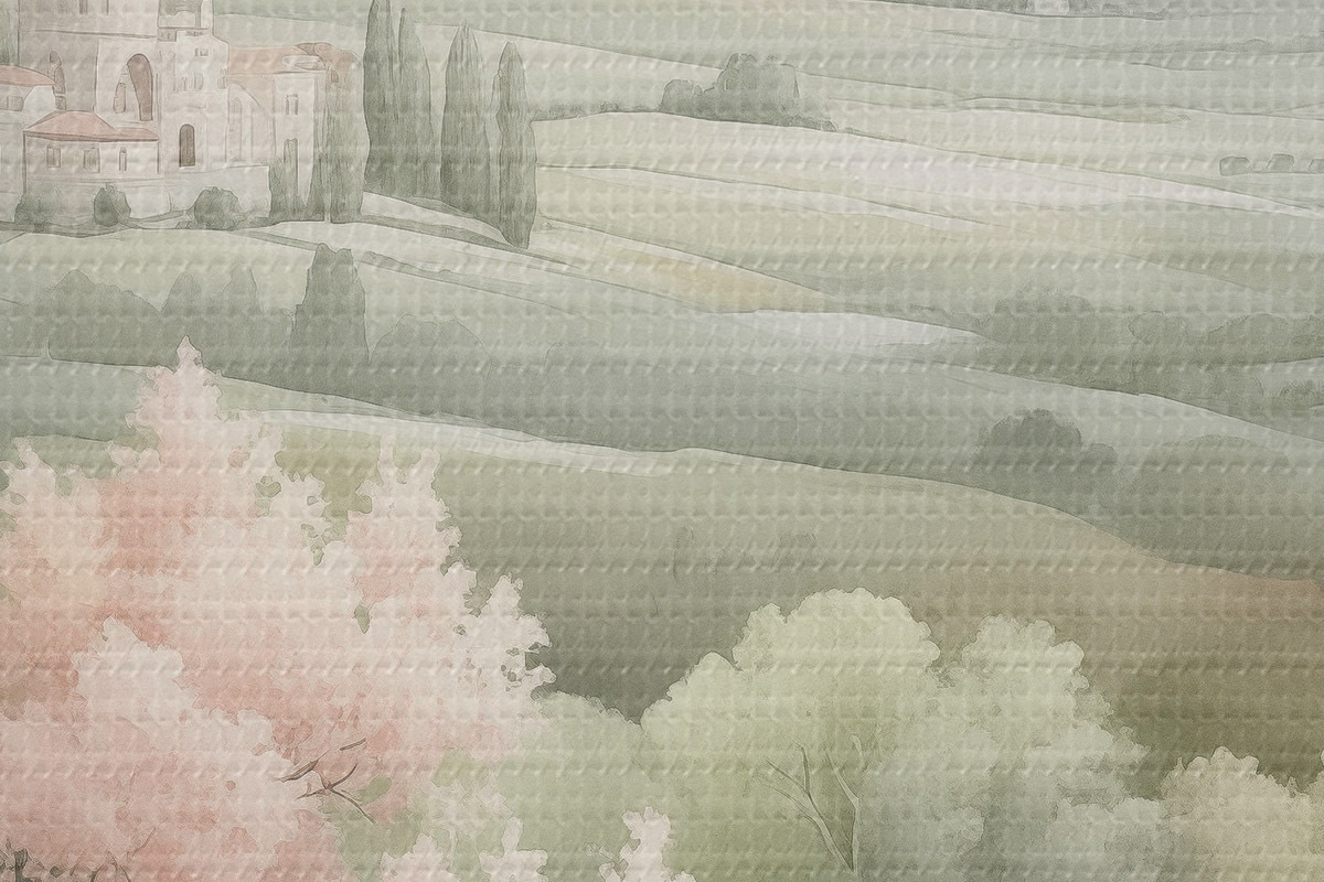 Runde Wandbilder Aquarell Natur, zarte Farben, Rosen, Bäume, grüne Hügel Nr r41223