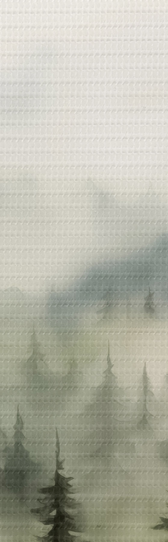 Runde Wandbilder Grüner Wald auf dem Hintergrund von Bergen und Nebel Aquarell Nr r41241