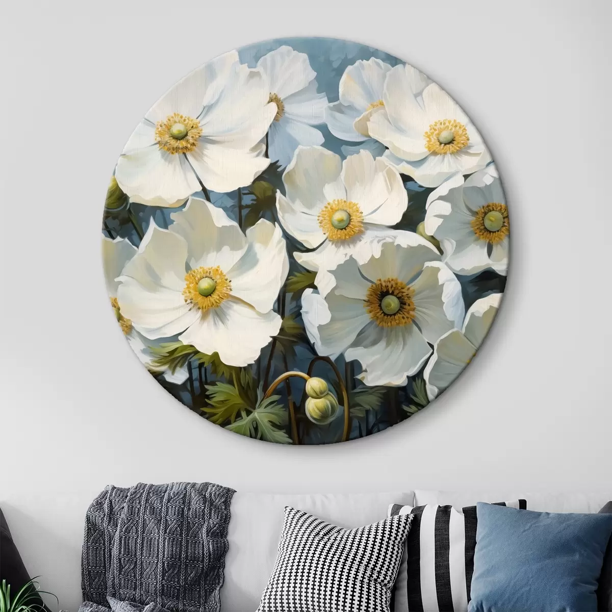Runde Wandbilder Weiß blühende Anemonen r41244